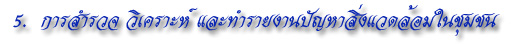 ศึกษาสภาพของปัญหา สาเหตุ ผลกระทบ การแก้ไขปัญหาของชุมชน โดยวิธีสังเกต