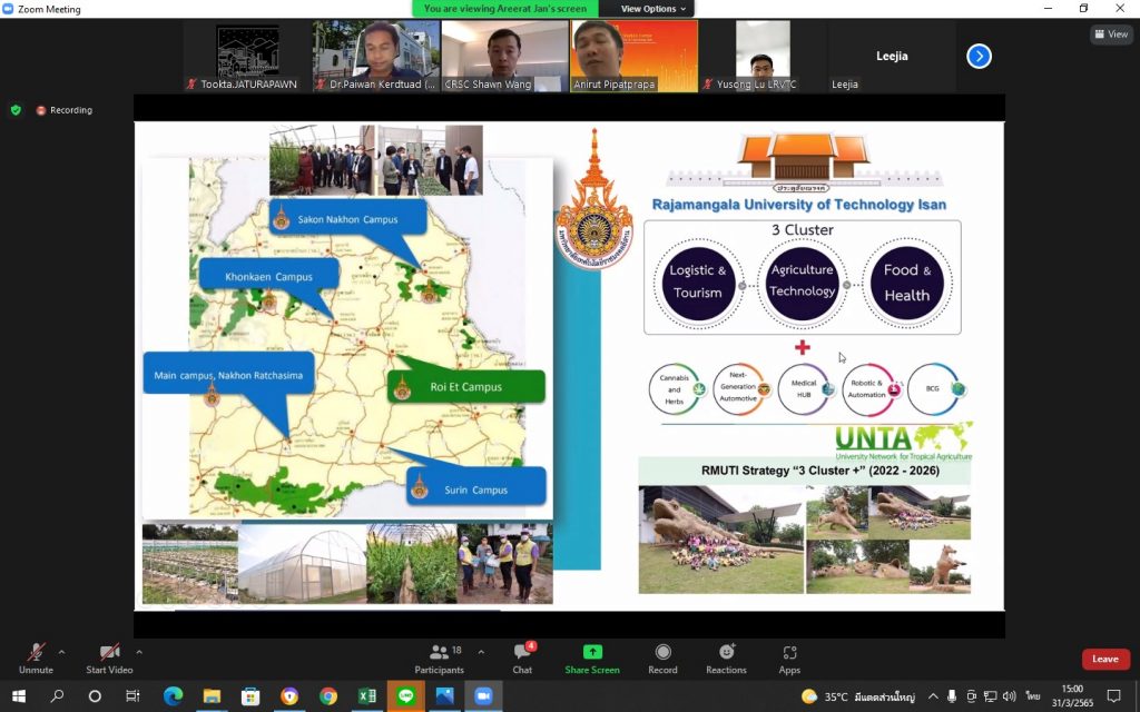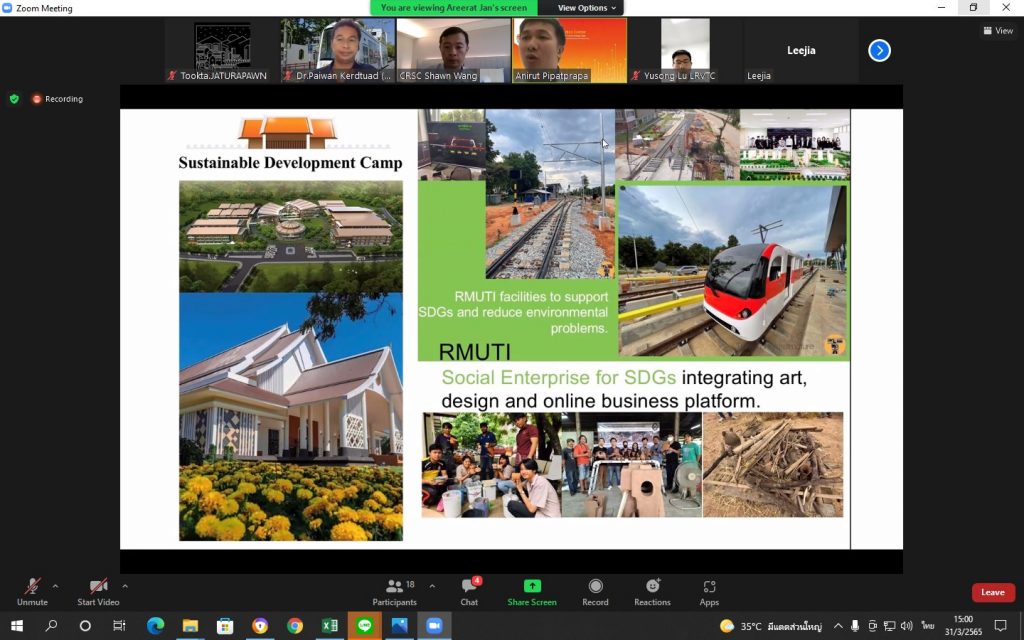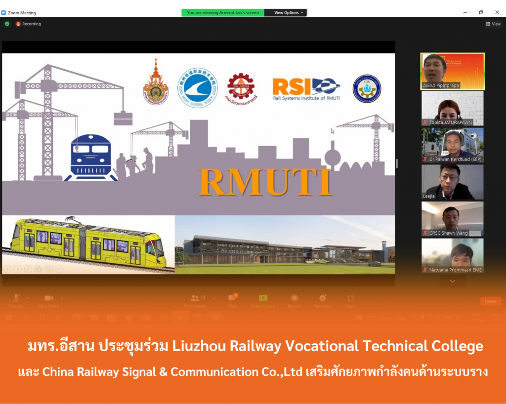 วันที่ 31 มีนาคม 2565 มทร.อีสาน รศ.ดร.โฆษิต ศรีภูธร อธิการบดี มอบหมายให้ อาจารย์ ดร.อนิรุธ พิพัฒน์ประภา ผู้ช่วยอธิการบดี อาจารย์ ดร.ไพลวรรณ เกิดตรวจ อาจารย์ประจำสาขาวิชาวิศวกรรมไฟฟ้า มทร.อีสาน วิทยาเขตขอนแก่น และเจ้าหน้าที่ศูนย์ศึกษานานาชาติ ร่วมประชุมหารือกับผู้แทนจาก Liuzhou Railway Vocational Technical College และผู้บริหารของ China Railway Signal & Communication Co.,Ltd สาธารณรัฐประชาชนจีน ในการส่งนักศึกษาด้านระบบราง จาก มทร.อีสาน วิทยาเขตขอนแก่น จำนวน 5 คน และอาจารย์ จำนวน 1 คน เข้าฝึกอบรมเชิงปฏิบัติการ ด้าน Signaling for High Speed Rail กับห้องปฏิบัติการของ Liuzhou Railway Vocational Technical College ซึ่งออกแบบและสนับสนุนโดย China Railway Signal & Communication Co.,Ltd นอกจากนี้หลังจากฝึกอบรมนักศึกษาจะต้องมาร่วมติดตั้งห้อง Signaling Control Lab ประเทศไทยต่อไป นอกจากนี้ทาง มทร. อีสาน ได้เสนอถึงความพร้อมทางด้านระบบราง ที่จะช่วยพัฒนาศักยภาพของบุคลากรด้านระบบรางของประเทศในกลุ่ม CLMV ด้วยของพื้นที่ที่อยู่ในเส้นทางของการพัฒนา High Speed Rail ของประเทศ และระบบสนับสนุนการเรียนการสอนที่ทันสมัยด้านระบบราง ซึ่งทางผู้บริหารของบริษัท CRSC ให้ความสนใจพร้อมต่อยอดการนำงานวิจัยด้านระบบรางของนักวิจัย มทร อีสาน ต่อยอดในเชิงพาณิชย์ รวมถึงการช่วยสนับสนุนผู้เชี่ยวชาญในการร่วมพัฒนารถไฟรางเบาที่ มทร.อีสาน วิทยาเขตขอนแก่น ต่อไป