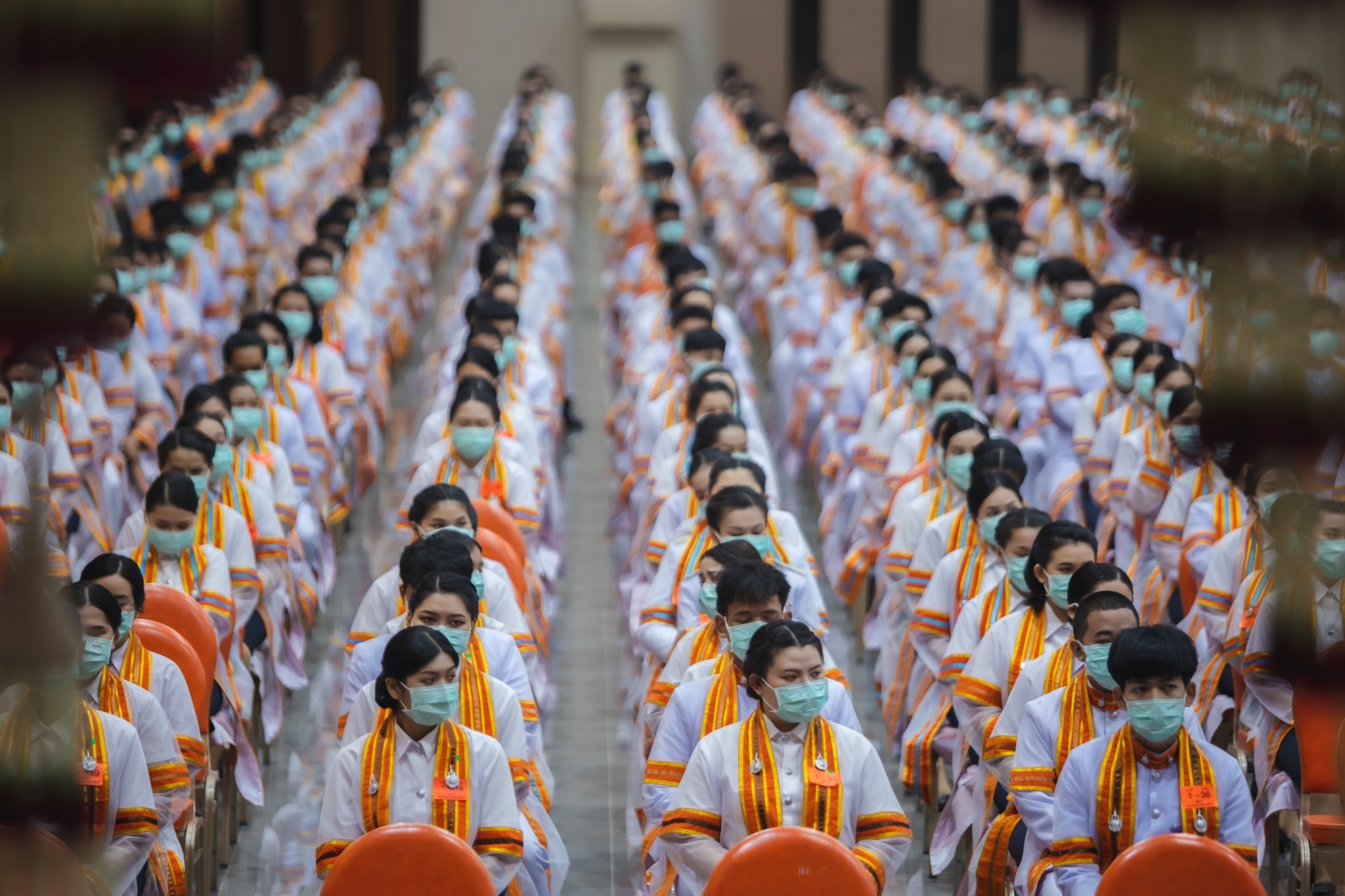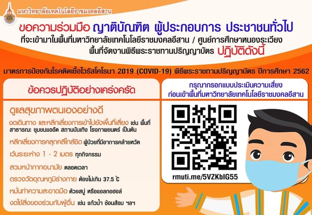 วันที่ 2 มีนาคม 2565 ณ มหาวิทยาลัยเทคโนโลยีราชมงคลอีสาน ศูนย์การศึกษาหนองระเวียง ต.หนองระเวียง อ.เมือง จ.นครราชสีมา รองศาสตราจารย์ ดร.โฆษิต ศรีภูธร อธิการบดี พร้อมด้วยผู้บริหาร คณาจารย์ บัณฑิต มหาบัณฑิตจากทุกวิทยาเขต เข้าร่วมการฝึกซ้อมใหญ่ พิธีพระราชทานปริญญาบัตร มหาวิทยาลัยเทคโนโลยีราชมงคลอีสาน ประจำปีการศึกษา 2562 ภายใต้มาตรการป้องกันการแพร่ระบาดโควิด-19 ซึ่งสำหรับการฝึกซ้อมในวันนี้ มีบัณฑิต มหาบัณฑิตเข้าร่วมพิธีพระราชทานปริญญาบัตร จำนวน 3,890 ราย ช่วงเช้าเป็นบัณฑิตจาก มทร.อึสาน ศูนย์กลางนครราชสีมา มทร.อีสาน วิทยาเขตสุรินทร์ และ มทร.อีสาน วิทยาเขตสกลนคร และในช่วงบ่ายเป็นบัณฑิตจาก มทร.อีสาน ศูนย์กลางนครราชสีมา และ มทร.อีสาน วิทยาเขตขอนแก่น ทั้งนี้บรรยากาศการฝึกซ้อมผ่านไปได้ด้วยดี ซึ่งคาดว่าในวันรับจริง วันที่ 4 มีนาคมนี้ จะสามารถดำเนินการไปได้อย่างราบรื่น และคาดว่าจะมีผู้เดินทางมาร่วมแสดงความยินดีกับผู้สำเร็จการศึกษาจาก มทร.อีสาน เป็นจำนวนมาก ทางมหาวิทยาลัยจึงขอความร่วมมือผู้ที่จะเข้าร่วมงานตรวจคัดกรองตนเองด้วย ATK และแจ้งผลผ่านทาง rmuti.me/5VZKblG55