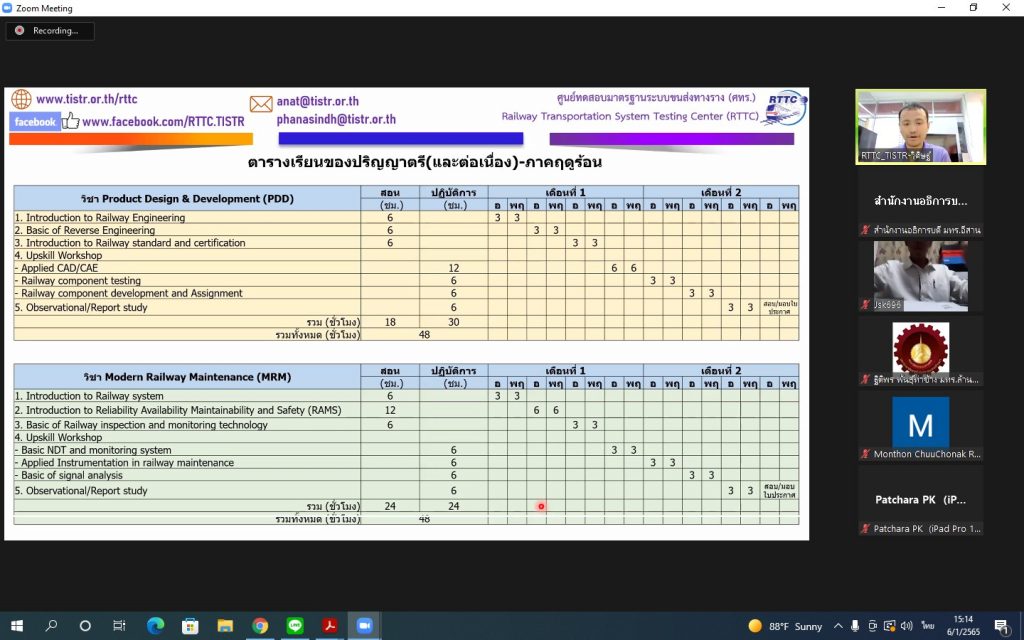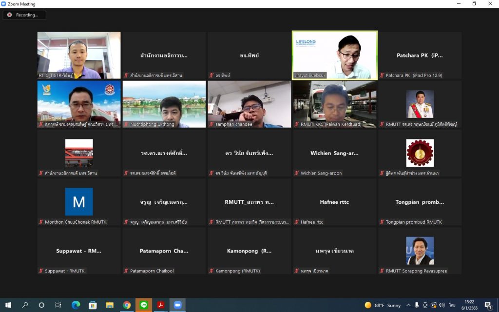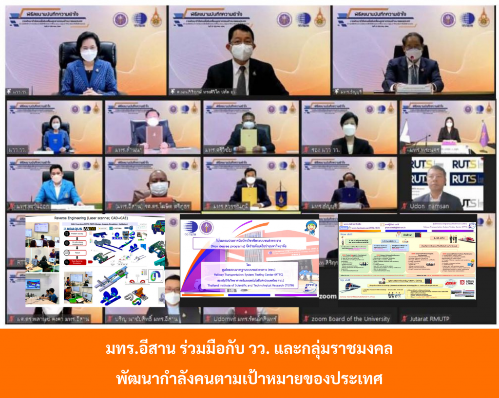 ทั้งนี้จากการร่วมมือดังกล่าว จึงได้เกิดการประชุมหารือระหว่าง 9 มทร. และ ศูนย์ทดสอบมาตรฐานระบบขนส่งทางราง สถาบันวิจัยวิทยาศาสตร์และเทคโนโลยีแห่งประเทศไทยขึ้น ในวันที่ 6 มกราคม 2565 เพื่อนำข้อมูลการดำเนินงานด้านระบบรางของแต่ละแห่งมาประชุมเพื่อหาแนวทางในการบูรณาการณ์พัฒนากำลังคนร่วมกัน ซึ่งทางด้านของ มทร.อีสาน ในปัจจุบันจัดการเรียนการสอนด้านระบบราง อยู่ 2 ที่คือ 1. มทร.อีสาน วิทยาเขตขอนแก่น จะเป็นการพัฒนาระบบราง เพื่อสนับสนุนด้านอุตสาหกรรมในการผลิตตัวรถ และผลิตโบกี้ 2. มทร.อีสาน ศูนย์กลางนครราชสีมา จะเน้นทางด้านการผลิตบุคลากรระบบรางเป็นหลัก โดยมีการจัดการสอนทั้งด้านวิศวกรรมเครื่องกล วิศวกรรมโยธา วิศวกรรมไฟฟ้า บริหารธุรกิจ และทางด้านผังเมือง