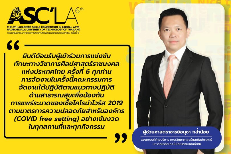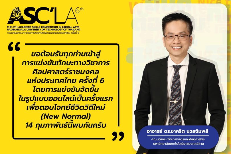 ด้าน อาจารย์ ดร.ชาคริต นวลฉิมพลี คณบดีคณะวิทยาศาสตร์และศิลปศาสตร์ ได้กล่าวถึงการจัดการแข่งขันทักษะทางวิชาการศิลปศาสตร์ราชมงคลแห่งประเทศไทย ครั้งที่ 6 ในรูปแบบออนไลน์ว่า “หลังจากเราเริ่มคุ้นเคยกับวิถีชีวิต New normal ไม่ว่าจะเป็นการสวมหน้ากากอนามัย ล้างมือด้วยเจลแอลกอฮอล์ การเว้นระยะห่างทางสังคม การทำงานที่บ้านผ่านระบบออนไลน์ คณะกรรมการจัดการแข่งขันในครั้งนี้จึงเล็งเห็นความสำคัญของการนำเทคโนโลยีที่พัฒนารุดหน้าอย่างรวดเร็วเข้ามาใช้ประโยชน์ในการจัดงาน เพื่อช่วยลดงบประมาณในการจัดงาน และเป็นมิตรกับสิ่งแวดล้อมเพราะทุกคนสามารถเข้าร่วมงานได้โดยไม่ต้องเดินทางมายังสถานที่จัดงาน ลดปริมาณคาร์บอนจากการเดินทางลดขยะที่เกิดจากการจัดงาน และยังมีข้อดีในการเพิ่มการเข้าถึงของนักศึกษาเพราะการจัดงานออนไลน์ผู้ร่วมงานสามารถอยู่ที่ไหนก็ได้ขอเพียงมีอุปกรณ์สื่อสารและสัญญาณอินเทอร์เน็ต โดยกิจกรรมต่าง ๆ ภายในงานถูกจะส่งผ่านไปยังผู้เข้าร่วมงานผ่านทางเทคโนโลยี ผู้เข้าร่วมงานจะได้รับชมและเป็นส่วนหนึ่งของงานผ่านการสตรีมมิ่ง (Streaming) หรือสามารถมีส่วนร่วมผ่านการใช้เครื่องมือช่วย เช่น การแสดงความคิดเห็นโดยการคอมเมนต์ในรายการไลฟ์สด การจัดงานในรูปแบบออนไลน์ช่วยลดความเสี่ยงที่ผู้คนจะออกมาเจอกัน ผู้เข้าร่วมงานไม่ต้องเดินทางมาร่วมงาน ไม่ต้องมาถึงสถานที่จัดงานเพื่อเข้าร่วม ทำให้ลดความเสี่ยงของโรคติดต่อและลดโอกาสแพร่กระจายของโรคได้อีกด้วย”