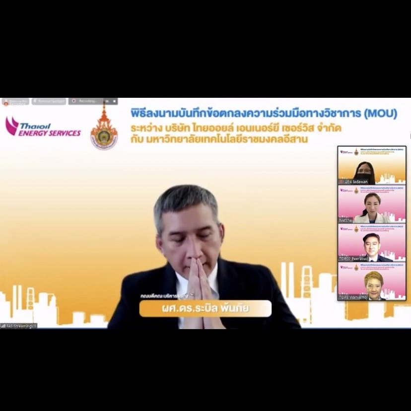 วันที่ 12 มกราคม 2565 มทร.อีสาน และ บริษัท ไทยออยล์เอนเนอร์ยีเซอร์วิส จำกัด ได้ทำพิธีลงนามบันทึกข้อตกลงความร่วมมือทางวิชาการร่วมกัน โดยมี รศ.ดร.โฆษิต ศรีภูธร อธิการบดี มทร.อีสาน ลงนามร่วมกับ นายวิโรจน์ วงศ์สถิรยาคุณ กรรมการอำนวยการ บริษัท ไทยออยล์เอนเนอร์ยีเซอร์วิส จำกัด ซึ่งจัดขึ้นผ่าระบบอิเล็กทรอนิกส์ภายใต้การป้องกันการแพร่ระบาดของโควิด-19 อย่างเคร่งครัด