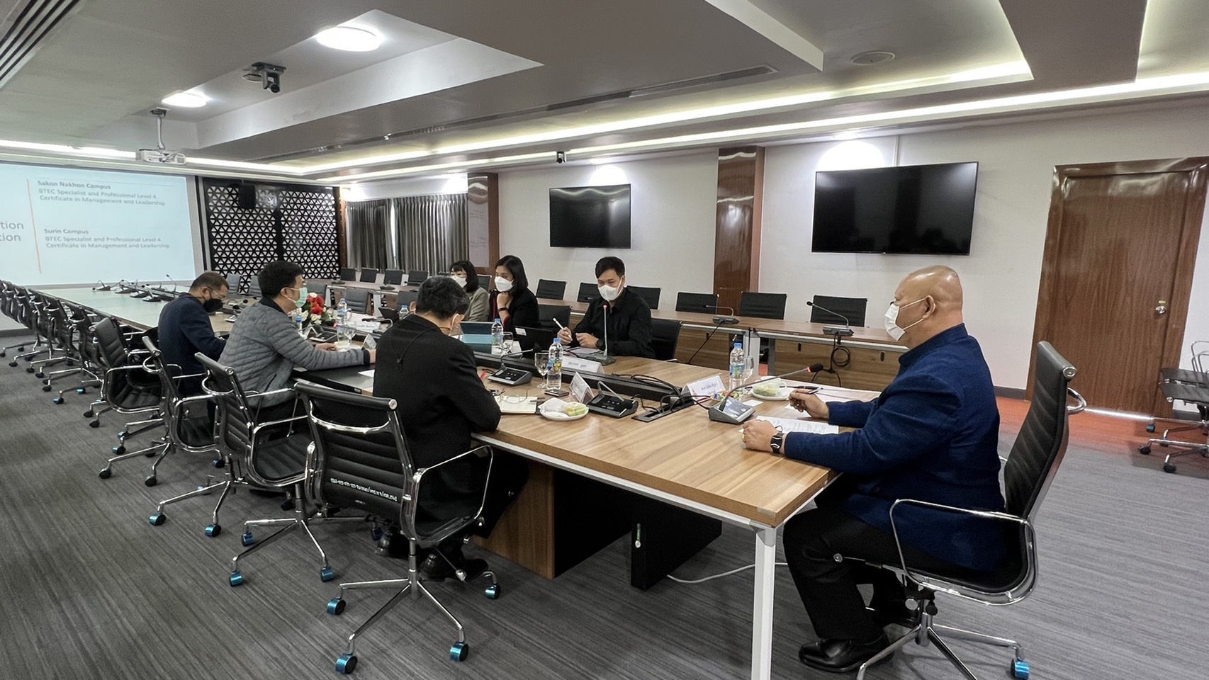 รองศาสตราจารย์ ดร.โฆษิต ศรีภูธร อธิการบดีมหาวิทยาลัยเทคโนโลยีราชมงคลอีสาน พร้อมด้วย รองศาสตราจารย์ ดร.ณรงค์ศักดิ์ ธรรมโชติ รองอธิการบดีฝ่ายวิชาการและวิเทศสัมพันธ์ และอาจารย์ ดร.จิณณพัตน์ โรจนวงศ์ ผู้อำนวยการสำนักส่งเสริมวิชาการและงานทะเบียน หารือร่วมกับ คุณวรรณกร มูลคำ BTEC Thailand Manager เพื่อรายงานผลการดำเนินงานของการจัดการหลักสูตร BTEC ของมหาวิทยาลัยเทคโนโลยีราชมงคลอีสาน ซึ่งมหาวิทยาลัยเทคโนโลยีราชมงคลอีสาน มีหลักสูตรที่ได้รับการรับรองจาก BTEC จำนวน 8 หลักสูตร และมี 2 หลักสูตรระดับปริญญาโท คือ BTEC Specialist and Professional Level 4 Certificate in Management and Leadership วิทยาเขตสุรินทร์ และวิทยาเขตสกลนคร