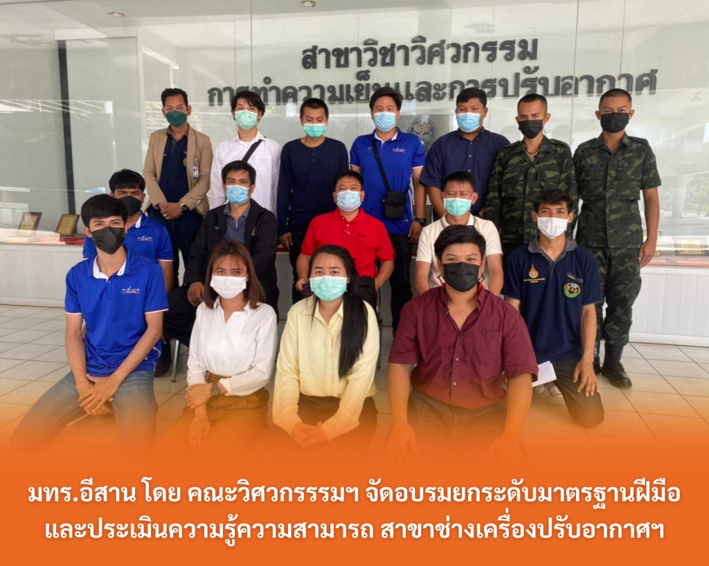 วันที่ 20 มีนาคม 2565 ศูนย์ประเมินความรู้ความสามารถมหาวิทยาลัยเทคโนโลยีราชมงคลอีสาน สถาบันนวัตกรรมเพื่อการพัฒนาระบบมาตรฐานความปลอดภัยและฝีมือแรงงาน และสาขาวิศวกรรมพลังงานและการปรับอากาศ คณะวิศวกรรมศาสตร์และเทคโนโลยี ดำเนินการจัดโครงการอบรมยกระดับมาตรฐานฝีมือและประเมินความรู้ความสามารถ สาขาช่างเครื่องปรับอากาศในบ้านและการพาณิชย์ขนาดเล็ก ระดับ 1 ซึ่งมีช่างเครื่องปรับอากาศเข้ารับการประเมินความรู้ความสามารถจำนวน 15 คน โดยผู้ที่ผ่านการประเมินจะได้รับหนังสือรับรองความรู้ความสามารถสาขาช่างเครื่องปรับอากาศในบ้านและการพาณิชย์ขนาดเล็ก ซึ่งสามารถเป็นเครื่องยืนยันให้กับผู้ประกอบอาชีพได้ว่าสามารถปฏิบัติงานได้โดยความปลอดภัย สร้างความมั่นใจให้กับผู้รับบริการ เนื่องจากประกาศกระทรวงแรงงาน เรื่อง กำหนดสาขาอาชีพที่อาจเป็นอันตรายต่อสาธารณะซึ่งต้องดำเนินการโดยผู้ได้รับหนังสือรับรองความรู้ความสามารถ ทั้งนี้ได้กำหนดให้สาขาช่างเครื่องปรับอากาศในบ้านและการพาณิชย์ขนาดเล็ก เป็นสาขาอาชีพที่อาจเป็นอันตรายต่อสาธารณะ ซึ่งผู้ปฏิบัติงานต้องดำเนินการโดยผู้ที่ได้รับหนังสือรับรองความรู้ความสามารถ เพื่อไม่ให้เกิดอันตราย ซึ่งสาขาอาชีพดังกล่าวอยู่ในประกาศส่งเสริมการพัฒนาฝีมือแรงงาน และในอนาคตจะประกาศบังคับตามกฎหมายต่อไป
