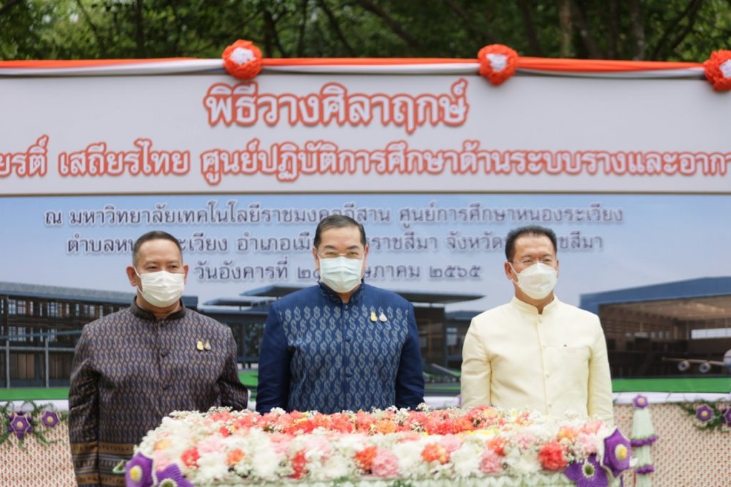 มหาวิทยาลัยเทคโนโลยีราชมงคลอีสาน (มทร.อีสาน) จัดพิธีวางศิลาฤกษ์ก่อสร้าง “อาคารสุรเกียรติ์ เสถียรไทย” ปฏิบัติการด้านระบบรางและอากาศยาน รองรับการขับเคลื่อนยุทธศาสตร์โลจิสติกส์และการท่องเที่ยวของจังหวัดนครราชสีมา ในระดับประเทศ และระดับนานาชาติ โดยมี ศาสตราจารย์พิเศษ ดร.สุรเกียรติ์ เสถียรไทย ประธานที่ปรึกษากิตติมศักดิ์ มทร.อีสาน ให้เกียรติร่วมเป็นประธานในพิธี และมีพระเทพสีมาภรณ์ เจ้าคณะจังหวัดนครราชสีมา เจ้าอาวาสวัดบึง พระอารามหลวง เป็นประธานฝ่ายสงฆ์ในการทำพิธีเจริญพระพุทธมนต์ พร้อมด้วย รองศาสตราจารย์ ดร.โฆษิต ศรีภูธร อธิการบดี มทร.อีสาน คณะกรรมการสภา คณะผู้บริหาร และบุคลากรของมหาวิทยาลัย ซึ่งมี นายวิเชียร จันทรโณทัย ผู้ว่าราชการจังหวัดนครราชสีมา คณะผู้แทนหน่วยงานภาครัฐและเอกชน เข้าร่วมพิธีอย่างเนืองแน่น ภายใต้มาตรการควบคุมและป้องกันการแพร่ระบาดของไวรัสโควิด-19 ณ ศูนย์การศึกษาหนองระเวียง มทร.อีสาน นครราชสีมา