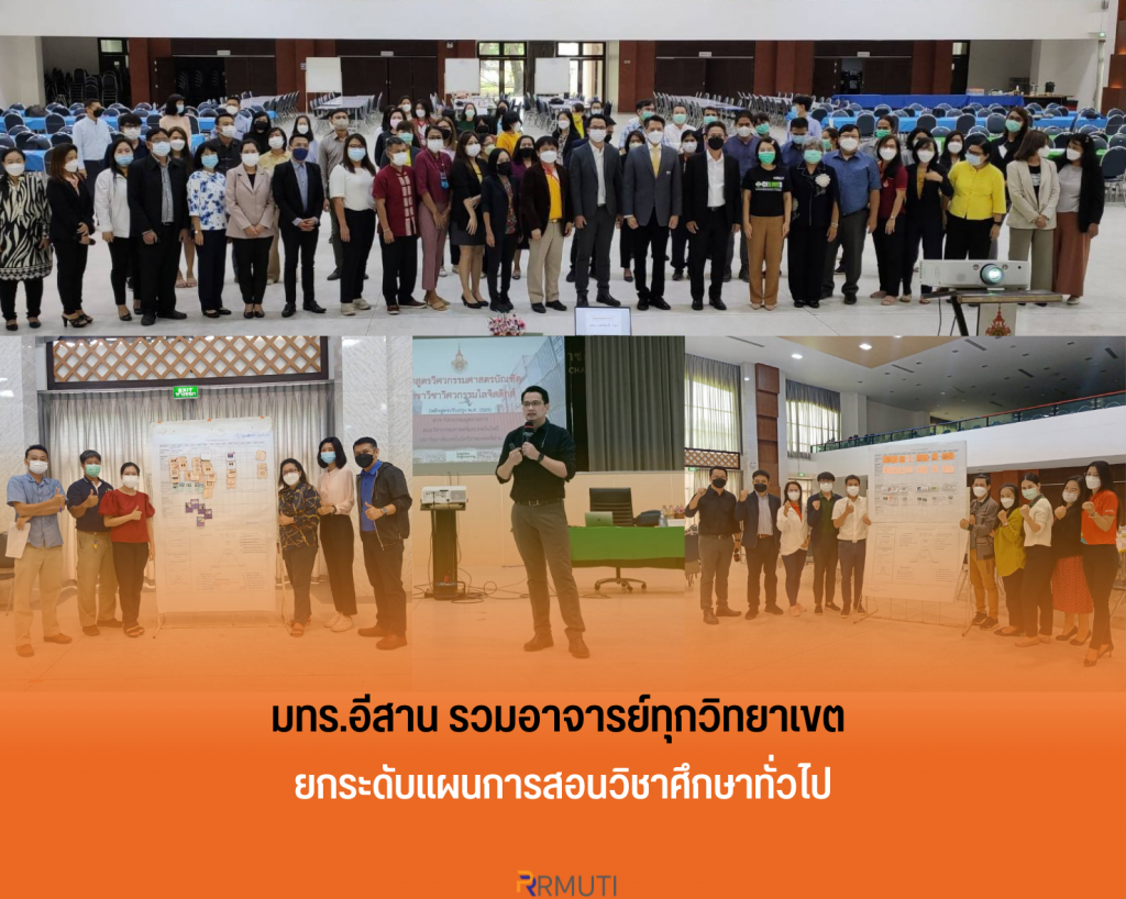 มทร.อีสาน โดย สำนักศึกษาทั่วไป จัดอบรมเชิงปฏิบัติการ “การจัดทำแผนการสอนวิชาศึกษาทั่วไป มทร.อีสาน” โดยมี รองศาสตราจารย์ ดร.ณรงค์ศักดิ์ ธรรมโชติ รองอธิการบดีฝ่ายวิชาการและวิเทศสัมพันธ์ เป็นประธานเปิดการอบรม ระหว่างวันที่ 23 – 24 พฤษภาคม 2565 ณ หอประชุมวทัญญู ณ ถลาง มหาวิทยาลัยเทคโนโลยีราชมงคลอีสาน นครราชสีมา โดยมีวัตถุประสงค์เพื่อให้ผู้เข้าร่วมโครงการซึ่งประกอบด้วยอาจารย์ทีมผู้สอน (Team Teaching) มทร.อีสาน นครราชสีมา วิทยาเขตขอนแก่น และวิทยาเขตสุรินทร์ มีความรู้ความเข้าใจเกี่ยวกับความรู้เกี่ยวกับการจัดการเรียนการสอนด้วยระบบการจัดการการเรียนรู้ของ มทร.อีสาน หรือ RMUTI Learning Management System (RMUTI – LMS) การจัดการเรียนการสอนแบบ Active Learning การจัดทำแผนการสอนวิชาศึกษาทั่วไป เพื่อนำความรู้ที่ได้รับไปจัดทำแผนการสอนวิชาศึกษาทั่วไปได้อย่างมีประสิทธิภาพ
