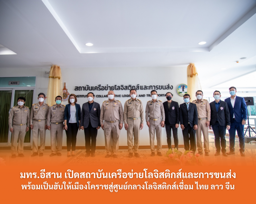 วันที่ 28 กุมภาพันธ์ 2565 มทร.อีสาน เปิดสถาบันเครือข่ายโลจิสติกส์และการขนส่ง (Institute of Collaborative Logistics and Transportation) โดยมี นายวิเชียร จันทรโณทัย ผู้ว่าราชการจังหวัดนครราชสีมา ให้เกียรติมาเป็นประธานในพิธีเปิด ซึ่งมี รองศาสตราจารย์ ดร.โฆษิต ศรีภูธร อธิการบดีมหาวิทยาเทคโนโลยีราชมงคลอีสาน พร้อมคณะผู้บริหารให้การต้อนรับ และมีหน่วยภาครัฐและเอกชนที่เกี่ยวข้องเข้าร่วมงาน ณ ศูนย์การศึกษาหนองระเวียง มทร อีสาน นครราชสีมา พร้อมกับเข้าเยี่ยมชมสถาบันระบบรางแห่ง มทร.อีสาน และสถาบันอุตสาหกรรมการบินของมหาวิทยาลัย