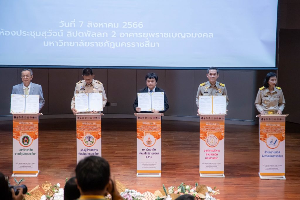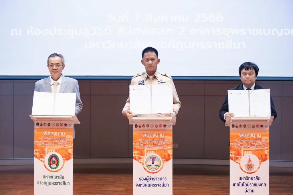 วันที่ 7 สิงหาคม 2566 มหาวิทยาลัยเทคโนโลยีราชมงคลอีสาน โดย รองศาสตราจารย์ ดร.โฆษิต  ศรีภูธร อธิการบดี มทร.อีสาน มอบหมาย รองศาสตราจารย์ ดร.บัณฑิต กฤตาคม รองอธิการบดีฝ่ายวิจัย พัฒนานวัตกรรม และบริการวิชาการ เข้าร่วม พิธีลงนามบันทึกข้อตกลงความร่วมมือ โครงการพัฒนาระบบฐานข้อมูลครัวเรือนเพื่อการพัฒนาจังหวัดนครราชสีมา ระหว่าง มหาวิทยาลัยราชภัฏนครราชสีมา กับ มหาวิทยาลัยเทคโนโลยีราชมงคลอีสาน , ที่ทำการปกครองจังหวัดนครราชสีมา , สำนักงานพัฒนาสังคมและความมั่นคงของมนุษย์จังหวัดนครราชสีมา , สำนักงานจังหวัดนครราชสีมา , สำนักงานส่งเสริมการปกครองท้องถิ่นจังหวัดนครราชสีมา, สำนักงานพัฒนาชุมชนจังหวัดนครราชสีมา, สำนักงานสถิติจังหวัดนครราชสีมา และ องค์การบริหารส่วนจังหวัดนครราชสีมา ภายใต้ โครงการขับเคลื่อนภาคี-สานข่าย-ขยายผลการบูรณาการระบบแก้ไขปัญหาความยากจน แบบเบ็ดเสร็จ แม่นยำ และยั่งยืนในพื้นที่จังหวัดนครราชสีมา ณ ห้องประชุมสุวัจน์  ลิปตพัลลภ 2 อาคารยุพราชเบญจมงคล มหาวิทยาลัยราชภัฏนครราชสีมา