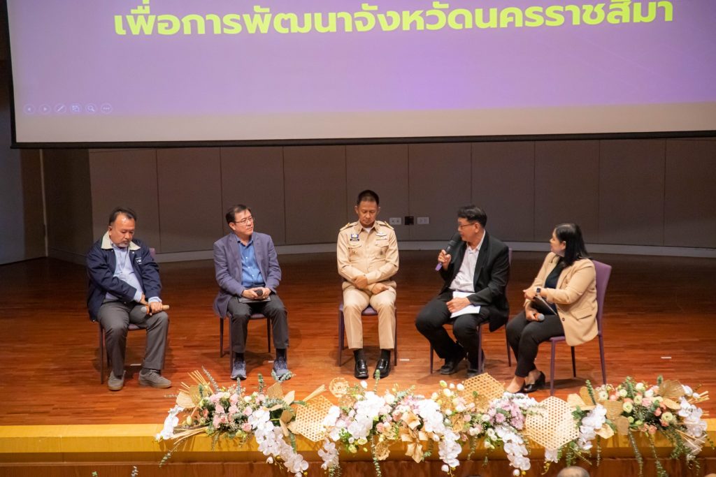 ภายในงาน รองศาสตราจารย์ ดร.อดิศร  เนาวนนท์ รักษาราชการแทนอธิการบดีมหาวิทยาลัยราชภัฏนครราชสีมา ได้กล่าวต้อนรับและบรรยายพิเศษ เรื่อง บทบาทมหาวิทยาลัยราชภัฏนครราชสีมากับการพัฒนาท้องถิ่น และมีการบรรยาย เรื่อง การบูรณาการความร่วมมือและขับเคลื่อน โครงการขับเคลื่อนภาคี-สานข่าย-ขยายผล การบูรณาการระบบแก้ไขปัญหาความยากจนแบบเบ็ดเสร็จ แม่นยำ และยั่งยืน  โดย คุณจิริกา นุตาลัย หน่วยบริหารและจัดการทุนด้านการพัฒนาระดับพื้นที่ (บพท.), การเสวนา เรื่อง บทเรียนและแนวทางการบูรณาการความร่วมมือในการใช้ประโยชน์จากระบบฐานข้อมูลครัวเรือนเพื่อการพัฒนาจังหวัดนครราชสีมา พร้อมทั้งการปาฐกถาพิเศษ “แก้จนโคราช” นโยบายและแนวคิดการแก้ไขปัญหาความยากจนจังหวัดนครราชสีมา โดย นายศุภภิมิตร  เปาริก รองผู้ว่าราชการจังหวัดนครราชสีมา และพิธีลงนามบันทึกข้อตกลงความร่วมมือฯ เพื่อขับเคลื่อนการบูรณาการระบบแก้ไขปัญหาความยากจน แบบเบ็ดเสร็จ แม่นยำ และยั่งยืนในพื้นที่จังหวัดนครราชสีมา
