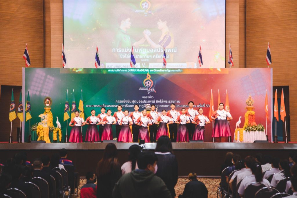 วันที่ 1 กุมภาพันธ์ 2566 มหาวิทยาลัยเทคโนโลยีราชมงคลอีสาน โดย รองศาสตราจารย์ ดร.โฆษิต ศรีภูธร อธิการบดีมหาวิทยาลัยเทคโนโลยีราชมงคลอีสาน พร้อมด้วย ผู้ช่วยศาสตราจารย์ สุรพจน์ วัชโรภากุล รองอธิการบดีฝ่ายกิจการนักศึกษาและศิษย์เก่าสัมพันธ์ และ รองศาสตราจารย์ ดร.บัณฑิต กฤตาคม รองอธิการบดีฝ่ายวิจัย พัฒนานวัตกรรม และบริการวิชาการ ในฐานะผู้จัดการทีมฟุตบอล มทร.อีสาน เข้าร่วมพิธีแถลงข่าว การจัดการแข่งขันฟุตบอลประเพณีชิงโล่พระราชทาน พระบาทสมเด็จพระบรมชนกาธิเบศร มหาภูมิพลอดุลยเดชมหาราช บรมนาถบพิตร ครั้งที่ 53 ระหว่าง มหาวิทยาลัยราชภัฏนครราชสีมา (มรนม.) กับ มหาวิทยาลัยเทคโนโลยีราชมงคลอีสาน (มทร.อีสาน) “100 ดวงใจ สานสายใยสองราช พัฒนาชาติด้วยศาสตร์ศิลป์แผ่นดินไทย” ณ หอประชุมใหม่ ม.ราชภัฏนครราชสีมา โดยทางมหาวิทยาลัยราชภัฏนครราชสีมา ได้รับเกียรติจาก รองศาสตราจารย์ ดร.อดิศร เนาวนนท์ อธิการบดีมหาวิทยาลัยราชภัฏนครราชสีมา รองศาสตราจารย์ ดร.สุธานันธ์ โพธิ์ชาธาร รองอธิการบดีฝ่ายกิจการนักศึกษาและศิษย์เก่าสัมพันธ์ และอาจารย์ธัชวัสส์ ตั้งตรงขันติ ผู้ฝึกสอนฟุตบอล มรนม. เป็นผู้แถลงข่าวการจัดการแข่งขัน โดยทั้ง 2 มหาวิทยาลัยได้มีการกล่าวถึงความพร้อมของการจัดการแข่งขัน และเปิดตัวนักกีฬาฟุตบอลทั้ง 2 ทีม ซึ่งจะเข้าร่วมชิงชัยในการแข่งขันครั้งนี้ และพลาดไม่ได้คือ การแสดงความพร้อมของผู้นำเชียร์ทั้งฝั่งของ มทร.อีสาน และ ฝั่งของ มรนม. ซึ่งมีความพร้อมเพรียง และความสวยงามไม่แพ้กัน