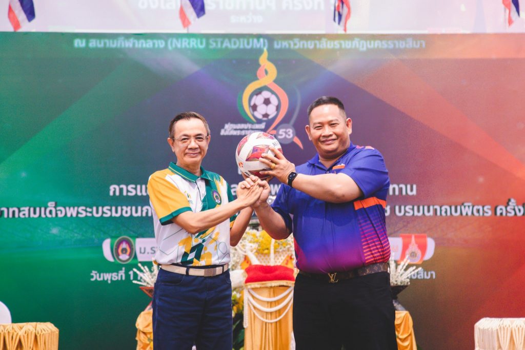 จึงขอเชิญชวนประชาชนชาวจังหวัดนครราชสีมาได้ร่วมชมการแข่งขันฟุตบอลประเพณีชิงโล่พระราชทานฯ ครั้งที่ 53 ระหว่าง มหาวิทยาลัยราชภัฏนครราชสีมา (มรนม.) กับ มหาวิทยาลัยเทคโนโลยีราชมงคลอีสาน (มทร.อีสาน) ในวันอาทิตย์ที่ 19 กุมภาพันธ์ 2566 ณ สนามกีฬากลาง (NRRU STADIUM) มหาวิทยาลัยราชภัฏนครราชสีมา ตั้งแต่เวลา 14.00 น. เป็นต้นไป