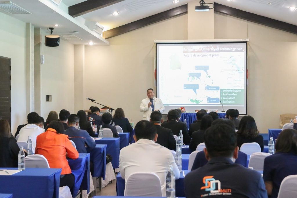 วันที่ 1-3 พฤษภาคม 2566 มหาวิทยาลัยเทคโนโลยีราชมงคลอีสาน จัดโครงการสัมมนาทิศทางการพัฒนานักศึกษา มทร.อีสาน ประจำปีงบประมาณ พ.ศ. 2566 ณ โรงแรมวิชชิ่ง ทรี รีสอร์ท จังหวัดขอนแก่น โดยมีอาจารย์ปริญ นาชัยสิทธิ์ รองอธิการบดีประจำวิทยาเขตขอนแก่น กล่าวรายงานวัตถุประสงค์การจัดโครงการ ซึ่งได้รับเกียรติจากรศ.ดร.โฆษิต ศรีภูธร อธิการบดี มทร.อีสาน เป็นประธานในพิธีเปิดโครงการ และบรรยายพิเศษหัวข้อ “ทิศทางการพัฒนานักศึกษา มทร.อีสาน 2566” ทั้งนี้มีผู้เข้าร่วมโครงการนำโดยอาจารย์สรวิศ ต.ศิริวัฒนา ผู้ช่วยอธิการบดีด้านกิจการนักศึกษาและศิษย์เก่าสัมพันธ์ มหาวิทยาลัยเทคโนโลยีราชมงคลอีสาน นางสาวสุวรรณี ทนงสำโรง พลเสน รักษาราชการแทนผู้อำนวยการกองพัฒนานักศึกษา รองคณบดีฝ่ายพัฒนานักศึกษาประจำคณะ บุคลากรกองพัฒนานักศึกษาและบุคลากรที่ปฏิบัติหน้าที่เกี่ยวกับการพัฒนานักศึกษาทุกวิทยาเขตเข้าร่วมสัมมนา จำนวนทั้งสิ้น 65 คน