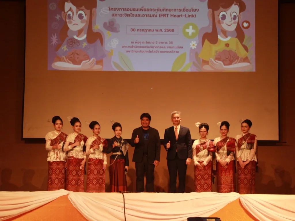 วันที่ 30 กรกฎาคม 2568 มหาวิทยาลัยเทคโนโลยีราชมงคลอีสาน โดย รองศาสตราจารย์ ดร.โฆษิต ศรีภูธร อธิการบดี มทร.อีสาน มอบหมายให้ ผู้ช่วยศาสตราจารย์ ดร.ระบิล พ้นภัย รองอธิการบดีฝ่ายวิชาการและวิเทศสัมพันธ์ เป็นประธานในกิจกรรมโครงการ FRT Heart-Link ประจำปีการศึกษา 2568 จัดโดยคณะระบบรางและการขนส่ง โดยมี รองศาสตราจารย์ ดร.อภิชิต คำภาหล้า คณบดีคณะระบบรางและการขนส่ง กล่าวรายงานวัตถุประสงค์ ณ ห้องประชุมตะโกราย 2 อาคาร 35 สำนักส่งเสริมวิชาการและงานทะเบียน ซึ่งภายในงานมีบุคลากรและนักศึกษาทุกชั้นปี เข้าร่วมกิจกรรมยกระดับทักษะการเชื่อมโยงสภาวะจิตใจและอารมณ์ กระบวนการให้คำปรึกษาแก่นักศึกษา ถือเป็นวาระสำคัญในการสร้างความสามัคคี แรงบันดาลใจ หลอมรวมความศรัทธา ความผูกพัน สานสัมพันธ์ระหว่างครูกับศิษย์ และต้อนรับนักศึกษาใหม่ร้อยดวงใจสู่บ้านคณะระบบรางและการขนส่ง