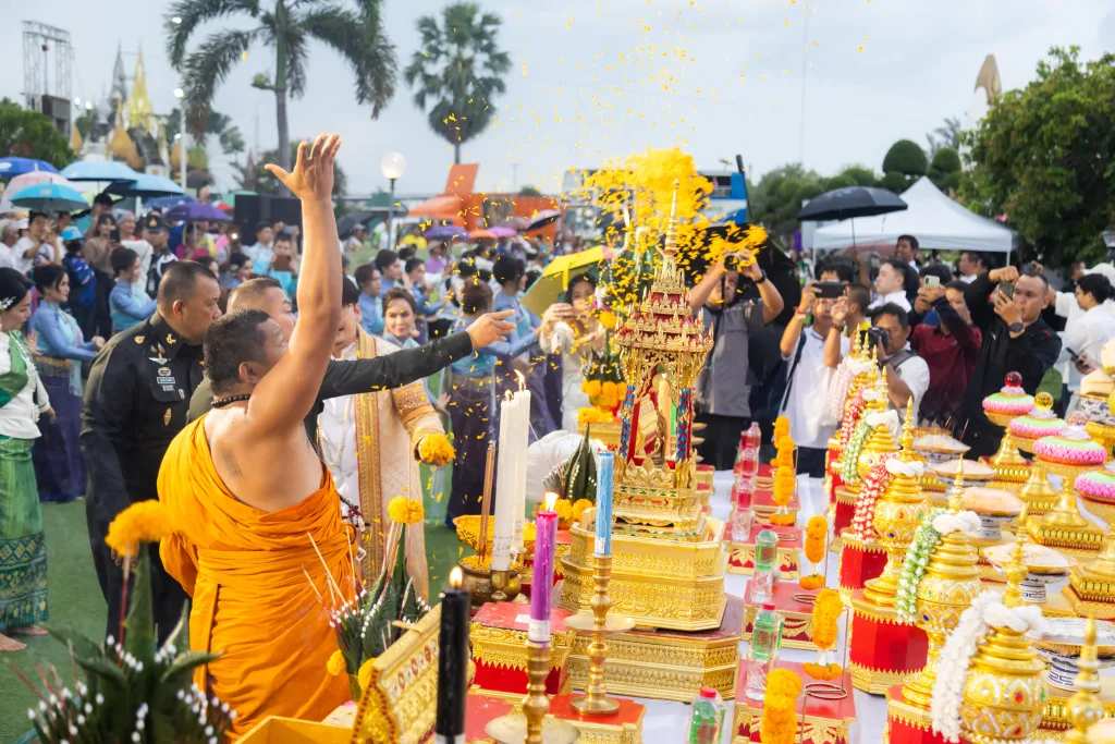 วันที่ 31 สิงหาคม 2568 มหาวิทยาลัยเทคโนโลยีราชมงคลอีสาน นำโดย รองศาสตราจารย์ ดร.โฆษิต ศรีภูธร อธิการบดี พร้อมด้วย ผู้ช่วยศาสตราจารย์ ดร.เอนก เจริญภักดี รองอธิการบดีฝ่ายยุทธศาสตร์ นโยบายและแผนพิธี และ ผู้ช่วยศาสตราจารย์ นัฐวุฒิ ทิพย์โยธา รองอธิการบดีฝ่ายส่งเสริมและพัฒนากิจการมหาวิทยาลัย ร่วมประกอบพิธีอัญเชิญ รูปหล่อพ่อปู่ศรีสุทโธ และแม่ย่าศรีปทุมมา เพื่อให้ประชาชนได้กราบไหว้ สักการบูชา และเป็นที่ยึดเหนี่ยวจิตใจ โดยได้รับเกียรติจาก พลโท บุญสิน พาดกลาง แม่ทัพภาคที่ 2 เป็นประธานในพิธี ณ สวนน้ำบุ่งตาหลั่วเฉลิมพระเกียรติ รัชกาลที่ 9 จังหวัดนครราชสีมา บรรยากาศภายในงานเป็นไปอย่างสง่างามและเต็มไปด้วยความศรัทธาของผู้เข้าร่วมพิธี ซึ่งการอัญเชิญรูปหล่อพ่อปู่ศรีสุทโธ – แม่ย่าศรีปทุมมาในครั้งนี้ นับเป็นอีกหนึ่งกิจกรรมสำคัญที่สะท้อนถึงการสืบสานความเชื่อและศรัทธาทางวัฒนธรรม ควบคู่กับการเป็นสัญลักษณ์แห่งความเป็นสิริมงคลและความเจริญรุ่งเรืองให้แก่ชุมชนและมหาวิทยาลัย