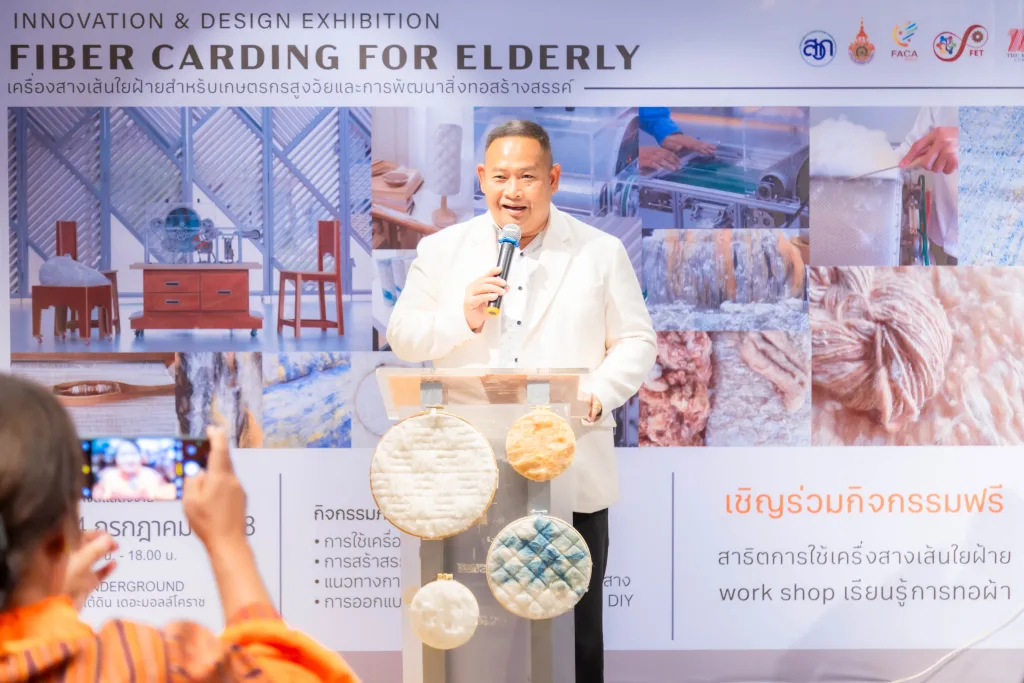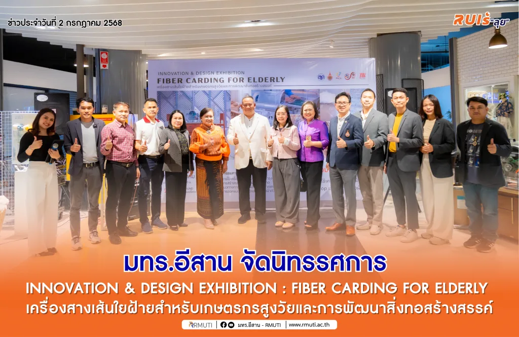 วันที่ 1 กรกฎาคม 2568 มหาวิทยาลัยเทคโนโลยีราชมงคลอีสาน โดย รองศาสตราจารย์ ดร.โฆษิต ศรีภูธร อธิการบดี มทร.อีสาน เป็นประธานเปิดงาน Innovation & Design Exhibition : Fiber Carding For Elderly เครื่องสางเส้นใยฝ้ายสำหรับเกษตรกรสูงวัยและการพัฒนาสิ่งทอสร้างสรรค์ ณ โซนกิจกรรม ชั้นใต้ดิน เดอะมอลล์ โคราช โดยภายในงานมีการนำเสนอโครงการวิจัย : การพัฒนานวัตกรรมเครื่องสางเส้นใยฝ้ายระดับวิสาหกิจชุมชนที่เหมาะสมกับเกษตรกรสูงวัย Developing an innovative cotton fiber carding machine community enterprise level suitable for elderly farmers ซึ่งได้รับสนับสนุนทุนวิจัยจาก สำนักงานพัฒนาการวิจัยการการเกษตร (องค์การมหาชน) ปีงบประมาน 2567 โดยมีคณะผู้วิจัย จาก มทร.อีสาน ดังนี้