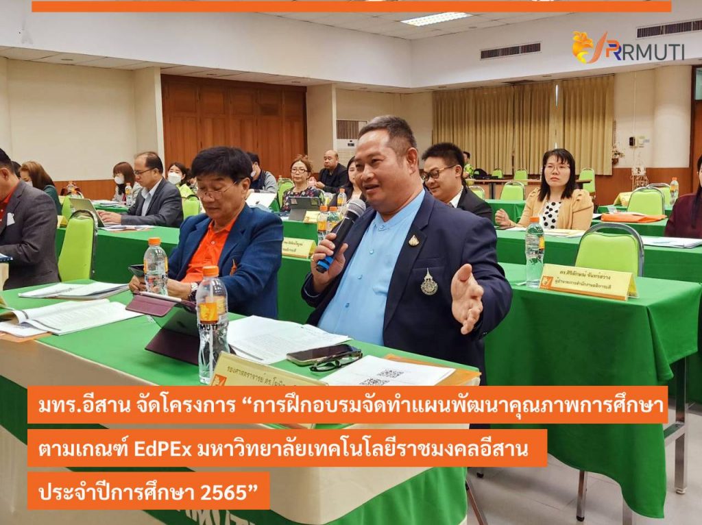 เป็นวิทยากร ซึ่งท่านเป็นผู้เชี่ยวชาญด้านการประกันคุณภาพการศึกษา กำหนดจัดโครงการ จำนวน 2 วัน ระหว่างวันที่ 2 -3 เมษายน 2566 โดยผู้เข้าร่วมโครงการจะเป็นผู้บริหารระดับสูง ได้แก่ อธิการบดี รองอธิการบดี ผู้ช่วยอธิการบดี และ ผู้อำนวยการสำนัก/สถาบัน/กอง จำนวนทั้งสิ้น 45 คน ด้าน รศ.ดร.โฆษิต ศรีภูธร อธิการบดี มทร.อีสาน ได้กล่าวว่า นับเป็นโอกาสดีที่มหาวิทยาลัยฯ ได้จัดโครงการนี้ขึ้น เพื่อให้ผู้บริหาร มีความรู้ ความเข้าใจเกี่ยวกับเกณฑ์คุณภาพการศึกษาเพื่อการดำเนินการที่เป็นเลิศ (EdPEx) รวมถึงแนวทางการจัดทำแผนพัฒนาคุณภาพการศึกษา ระดับมหาวิทยาลัย ประจำปีการศึกษา 2565 สามารถปรับปรุงตามข้อเสนอแนะ (OFI) ของคณะกรรมการตรวจประเมินคุณภาพการศึกษาตามเกณฑ์ EdPEx ได้อย่างมีประสิทธิภาพ นอกจากนี้เพื่อให้การดำเนินงานสอดคล้องและบรรลุเป้าหมายตามตัวชี้วัดยุทธศาสตร์การพัฒนามหาวิทยาลัยฯ ซึ่งเป็นเป้าหมายสำคัญที่จะขับเคลื่อนและยกระดับการพัฒนาคุณภาพองค์กรสู่ความเป็นเลิศและเพิ่มศักยภาพในการแข่งขันได้ทั้งในระดับชาติและนานาชาติ