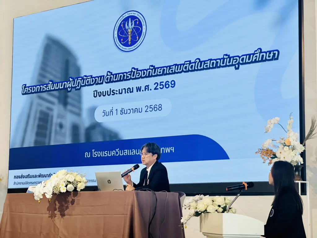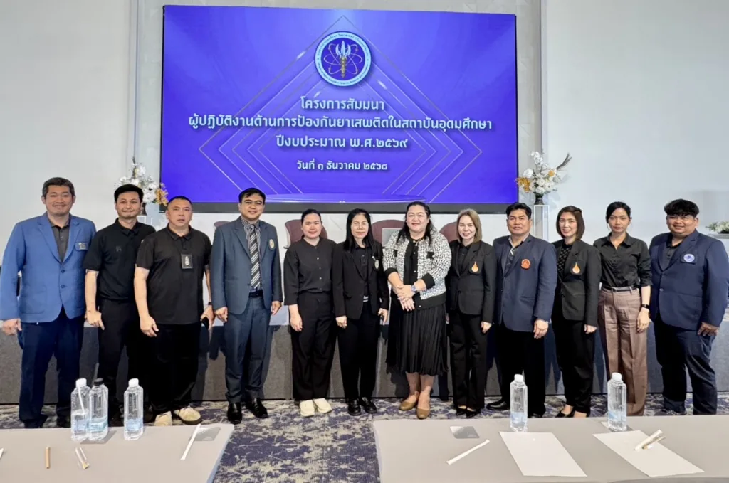 วันที่ 1 ธันวาคม 2568 มหาวิทยาลัยเทคโนโลยีราชมงคลอีสาน โดย รองศาสตราจารย์ ดร.โฆษิต ศรีภูธร รักษาราชการแทน อธิการบดี มทร.อีสาน มอบหมายให้ กองพัฒนานักศึกษา โดย นางสาวสุวรรณี ทนงสำโรง พลเสน รักษาการในตำแหน่งผู้อำนวยการกองพัฒนานักศึกษา และ นางสาวยุพาพรรณ คนกระโทก หัวหน้าแผนกงานพัฒนาวินัย เข้าร่วมโครงการสัมมนาวิชาการด้านการป้องกันและแก้ไขปัญหายาเสพติดในสถาบันอุดมศึกษา ประจำปีงบประมาณ พ.ศ.2569 ณ ห้อง Diamond Dome 1 ชั้น 22 โรงแรมควีนส์แลนด์ กรุงเทพมหานคร  รับฟังการสรุปผลการดำเนินงาน ปี 2568 และรับฟังชี้แจงแนวทางการดำเนินงานโครงการสร้างภูมิคุ้มกันและป้องกันยาเสพติดในสถาบันอุดมศึกษา ประจำปีงบประมาณ พ.ศ.2569  โดยคุณศุภโชค สุขมาก รักษาราชการแทนผู้อำนวยการกองส่งเสริมและพัฒนากำลังคน