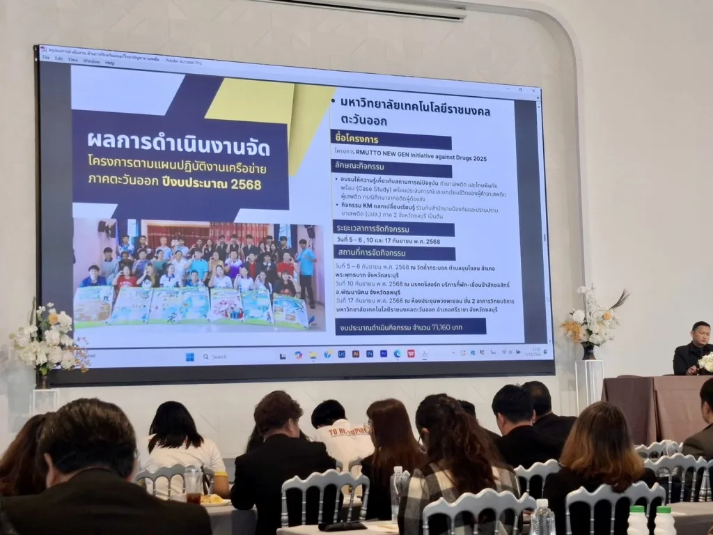จากนั้นเป็นการนำเสนอผลการดำเนินงานโครงการสร้างภูมิคุ้มกันและป้องกันปัญหายาเสพติดในสถาบันอุดมศึกษา ปีงบประมาณ พ.ศ.2568 จากสถาบันแม่ข่ายเครือข่ายเพื่อพัฒนาอุดมศึกษา 9 เครือข่าย