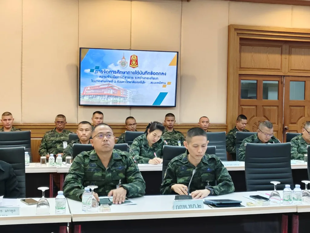 วันที่ 3 ธันวาคม 2568 มหาวิทยาลัยเทคโนโลยีราชมงคลอีสาน โดย รองศาสตราจารย์ ดร.โฆษิต ศรีภูธร อธิการบดี มอบหมายให้ ผู้ช่วยศาสตราจารย์ ดร.เอนก เจริญภักดี รองอธิการบดีฝ่ายยุทธศาสตร์ นโยบายและแผน และผู้อำนวยการศูนย์ประสานงาน 1 กองบัญชาการ 1 สถานศึกษา (มทร.อีสาน) ผู้ช่วยศาสตราจารย์นัฐวุฒิ ทิพย์โยธา รองอธิการบดีฝ่ายส่งเสริมและพัฒนากิจการมหาวิทยาลัย อาจารย์ ดร.จารุพงษ์ บรรเทา ผู้ช่วยอธิการบดี รองศาสตราจารย์ ดร.ณรงค์ศักดิ์ โยธา ผู้ช่วยอธิการบดี และคณะทำงาน 1 กองบัญชาการ 1 สถานศึกษา พร้อมด้วยสำนักส่งเสริมวิชาการและงานทะเบียน เข้าร่วมประชุมวางแผนการรับสมัครนักศึกษา หลักสูตรเพิ่มวุฒิการศึกษา รุ่นที่ 4 ร่วมกับกองทัพบก โดยกองทัพภาคที่ 2 ซึ่งการประชุมครั้งนี้ได้รับเกียรติจาก พลโท ปิยะพณห์ ฐิตวัฒนานนท์ แม่ทัพน้อยที่ 2 เป็นประธานการประชุม พร้อมด้วย พลตรี ธนัชพงศ์ นันทสิริสิทธิ์ ผู้อำนวยการศูนย์พัฒนาการศึกษา กองทัพภาคที่ 2 และผู้บังคับหน่วยที่เกี่ยวข้อง เข้าร่วมการประชุม ณ ห้องประชุม 1 กองบัญชาการ กองทัพภาคที่ 2 ค่ายสุรนารี จังหวัดนครราชสีมา และผ่านระบบการประชุมอิเล็กทรอนิกส์