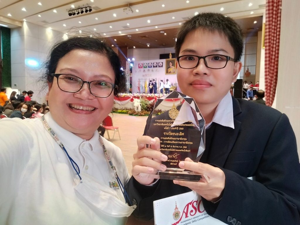 รางวัลชนะเลิศ การแข่งขันเรียงความภาษาอังกฤษ โดย นายธีธัช จันทร์ศิริ นักศึกษาสาขาวิชาภาษาอังกฤษเพื่อการสื่อสาร (EIC) ชั้นปีที่ 3 อาจารย์ผู้ฝึกซ้อม ได้แก่ ผู้ช่วยศาสตราจารย์อัญชลี วีระชัยสันติกุล และอาจารย์ผัลย์ศุภา โคตุทา