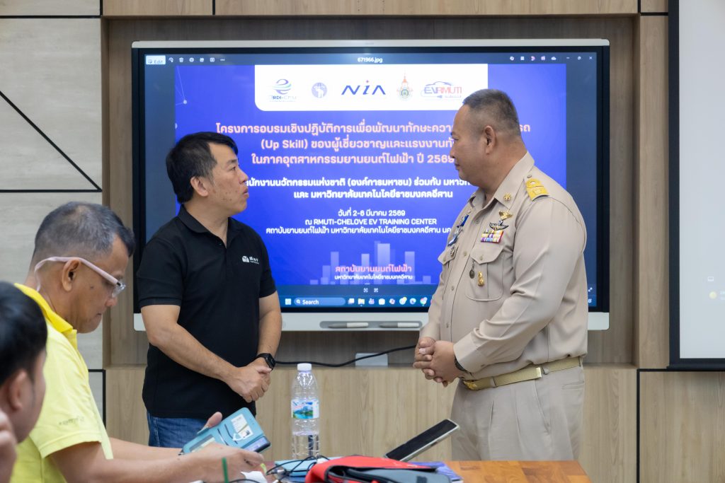 วันที่ 2 มีนาคม 2569 สถาบันยานยนต์ไฟฟ้า มหาวิทยาลัยเทคโนโลยีราชมงคลอีสาน โดยได้รับเกียรติจาก รองศาสตราจารย์ ดร.โฆษิต ศรีภูธร อธิการบดี เป็นประธานในพิธีเปิดการอบรมเชิงปฏิบัติการเพื่อพัฒนาทักษะความรู้ความสามารถ (Up Skill) ของผู้เชี่ยวชาญและแรงงานทักษะสูงในภาคอุตสาหกรรมยานยนต์ไฟฟ้า ปี 2569 “หลักสูตรการซ่อมบำรุงรถยนต์ไฟฟ้า รุ่นที่ 3” พร้อมด้วย ผู้ช่วยศาสตราจารย์ ดร.เอนก เจริญภักดี รองอธิการบดีฝ่ายยุทธศาสตร์ นโยบายและแผน กำกับดูแลยุทธศาสตร์ด้านยานยนต์ไฟฟ้า อาจารย์ ดร.ประจวบ อินระวงค์ ผู้ช่วยอธิการบดีและผู้อำนวยการสถาบันยานยนต์ไฟฟ้า มทร.อีสาน ผู้ช่วยศาสตราจารย์ ดร.รุ่งเพชร ก่องนอก รองผู้อำนวยการฯฝ่ายกิจการนักศึกษาและโครงการพิเศษ อาจารย์กฤษฎิ์ ต.ศิริวัฒนา รองผู้อำนวยการฯ ฝ่ายวิชาการ วิจัย และบริการวิชาการ ให้การต้อนรับ ผู้ช่วยศาสตราจารย์ ดร.ชนะ เยี่ยงกมลสิงห์ วิทยากรผู้เชี่ยวชาญด้านยานยนต์ไฟฟ้า มหาวิทยาลัยเชียงใหม่ ณ RMUTI-CHELOVE EV TRAINING CENTER สถาบันยานยนต์ไฟฟ้า จังหวัดนครราชสีมา