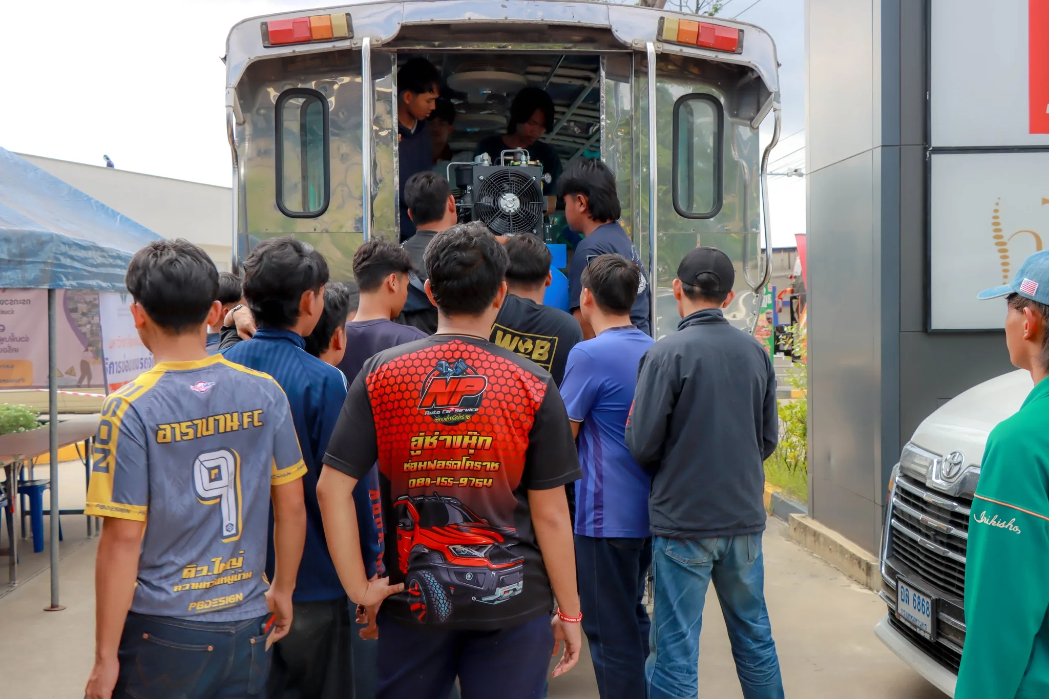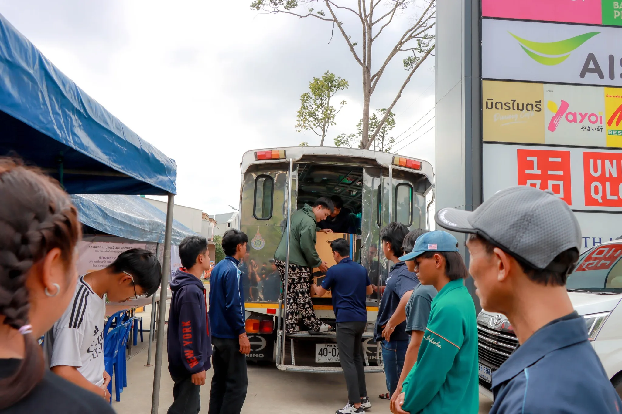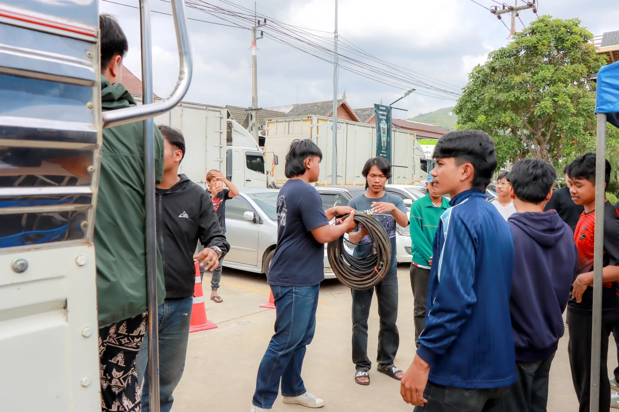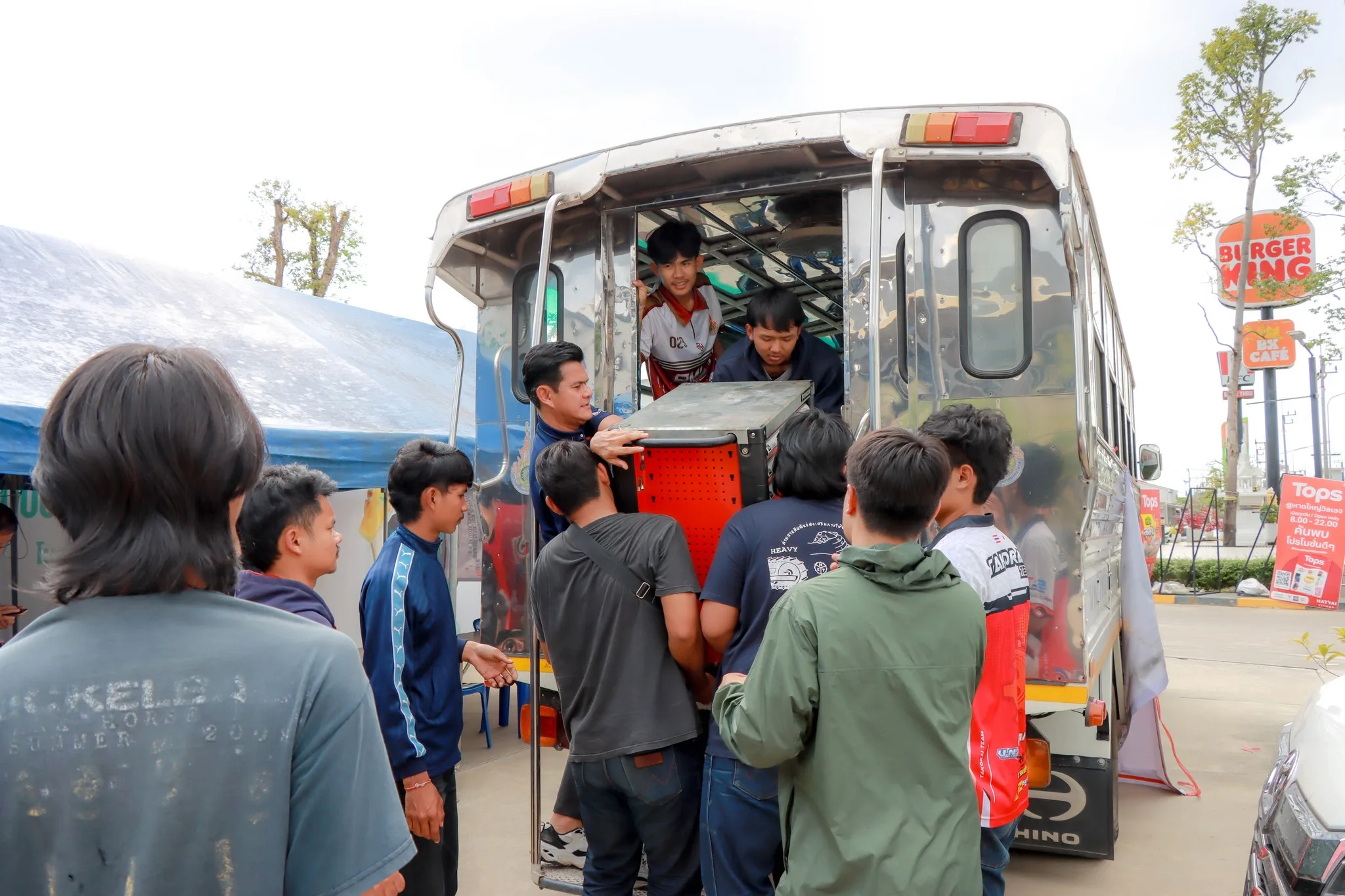 – ทีมงานเดินทางถึงพื้นที่ปฏิบัติงาน หาดใหญ่วิลเลจทั้งรถบัส รถบรรทุก และรถตู้ของทีมงานศิษย์เก่า คุณกรกช ชุมแสง เวลาประมาณ 13.00 น.