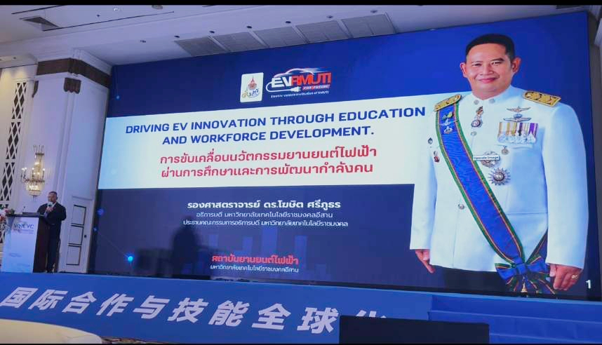 ต่อเนื่องในช่วงบ่าย เวทีระดับโลกได้เปิดพื้นที่ให้กับทรรศนะผู้นำด้านการศึกษาของไทย โดย รองศาสตราจารย์ ดร.โฆษิต ศรีภูธร ได้รับเกียรติให้ขึ้นบรรยายพิเศษ (Keynote Speech) ในหัวข้อ “Driving EV Innovation through Education and Workforce Development” (การขับเคลื่อนนวัตกรรมยานยนต์ไฟฟ้าผ่านการศึกษาและการพัฒนากำลังคน) ตอกย้ำศักยภาพของ มทร.อีสาน ในฐานะ “สถาบันเรือธง” (Flagship Institution) ที่มีความพร้อมสูงสุดในการเป็นศูนย์กลางการผลิต “นวัตกร” (Innovators) และแรงงานทักษะสูง โดยในการบรรยาย อธิการบดี มทร.อีสาน ได้เจาะลึกถึงยุทธศาสตร์เชิงรุกในการเตรียมความพร้อมกำลังคน ดังนี้