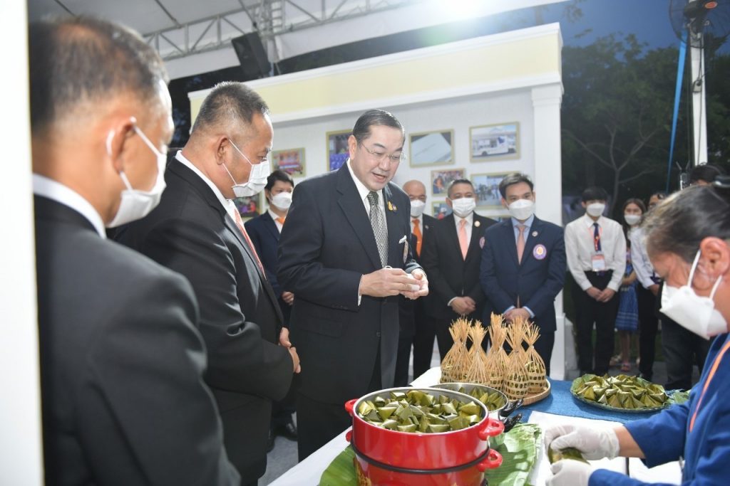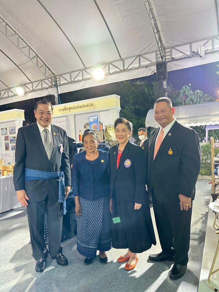 ศาสตราจารย์พิเศษ ดร.สุรเกียรติ์ เสถียรไทย รองประธานกรรมการที่ปรึกษาและประธานกรรมการบริหารมูลนิธิอาสาเพื่อนพึ่ง (ภาฯ) ยามยาก สภากาชาดไทยและประธานที่ปรึกษากิตติมศักดิ์ มหาวิทยาลัยเทคโนโลยีราชมงคลอีสาน เยี่ยมชมนิทรรศการและการออกร้านค้าจาก มทร.อีสาน