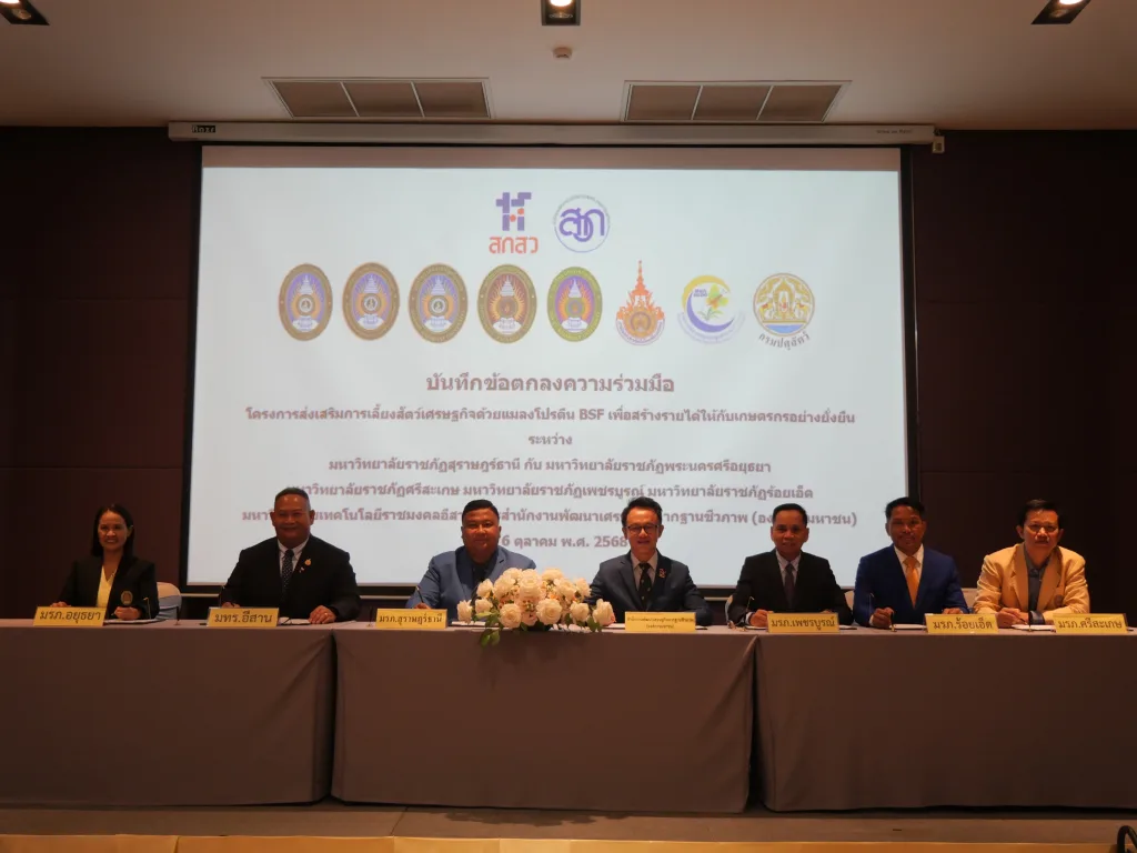 การลงนามความร่วมมือครั้งนี้มีวัตถุประสงค์เพื่อส่งเสริมและขยายผลการเลี้ยงแมลงโปรตีน BSF (Black Soldier Fly) ซึ่งเป็นแหล่งโปรตีนทางเลือกที่ช่วยลดต้นทุนการผลิตอาหารสัตว์ พร้อมทั้งสร้างรายได้เสริมให้กับเกษตรกรไทยอย่างยั่งยืน โดยมุ่งเน้นให้กลุ่มเกษตรกรที่ขึ้นทะเบียนกับกระทรวงเกษตรและสหกรณ์ หรือกลุ่มลูกค้าของธนาคารเพื่อการเกษตรและสหกรณ์การเกษตร (ธ.ก.ส.) สามารถเข้าถึงเทคโนโลยีและองค์ความรู้ผ่านเครือข่ายมหาวิทยาลัยท้องถิ่นและศูนย์เรียนรู้การเพาะเลี้ยงแมลงโปรตีน BSF