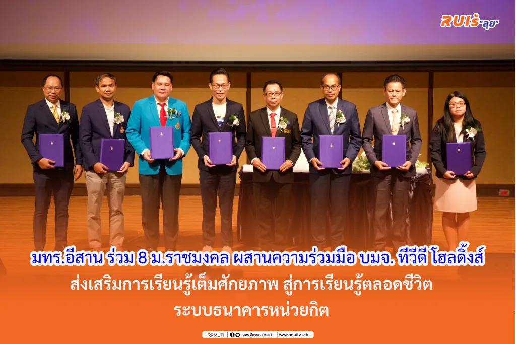 วันที่ 5 พฤศจิกายน 2567 มหาวิทยาลัยเทคโนโลยีราชมงคลอีสาน โดย รองศาสตราจารย์ ดร.โฆษิต ศรีภูธร อธิการบดี มทร.อีสาน มอบ รองศาสตราจารย์ ดร.ณรงค์ศักดิ์ ธรรมโชติ รองอธิการบดีฝ่ายวิชาการและวิเทศสัมพันธ์ เข้าร่วมพิธีลงนามบันทึกความเข้าใจร่วมกันระหว่าง บริษัท TVD Holdings Public Company Limited (TVDH) และมหาวิทยาลัยเทคโนโลยีราชมงคล ทั้ง 9 แห่ง ร่วมกับ พันธมิตรและภาคอุตสาหกรรม ณ ห้องประชุมเบญจนฤมิต (Auditorium Room) ชั้น 4 สถานีวิทยุโทรทัศน์กองทัพบก ช่อง 5 ถนนพญาไท กรุงเทพมหานคร