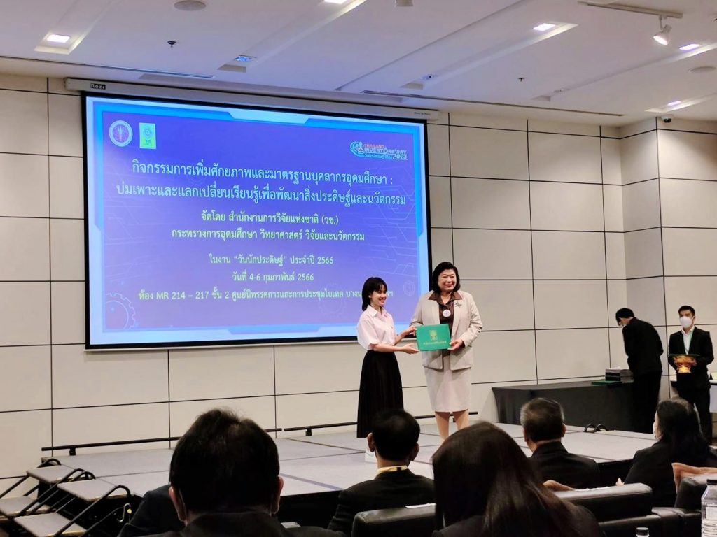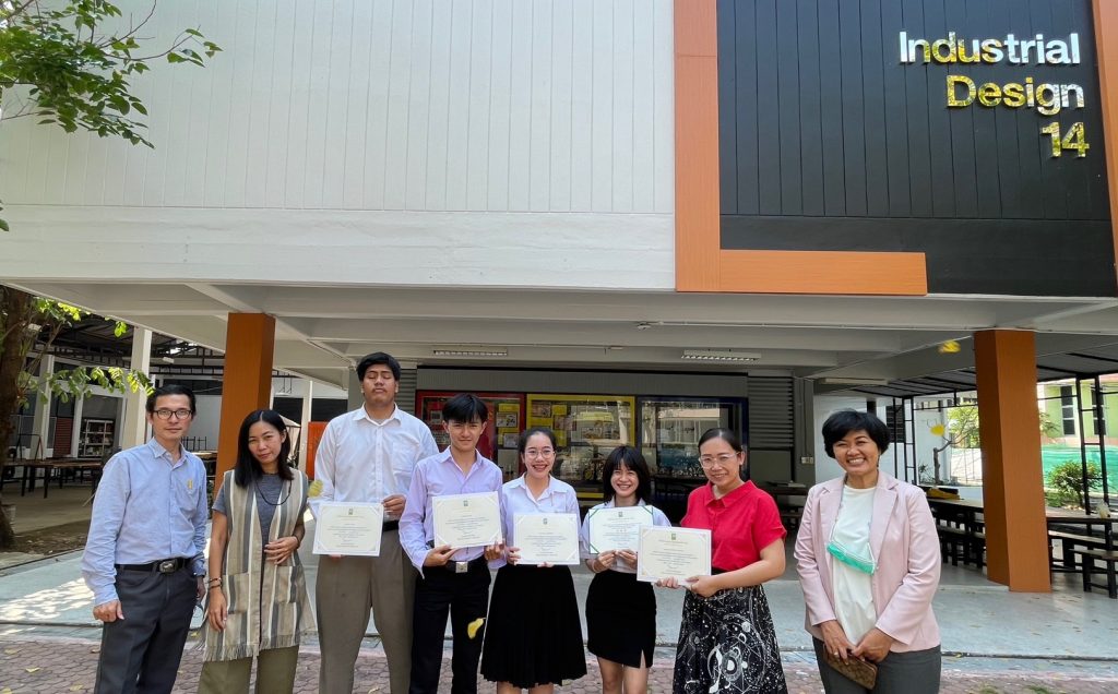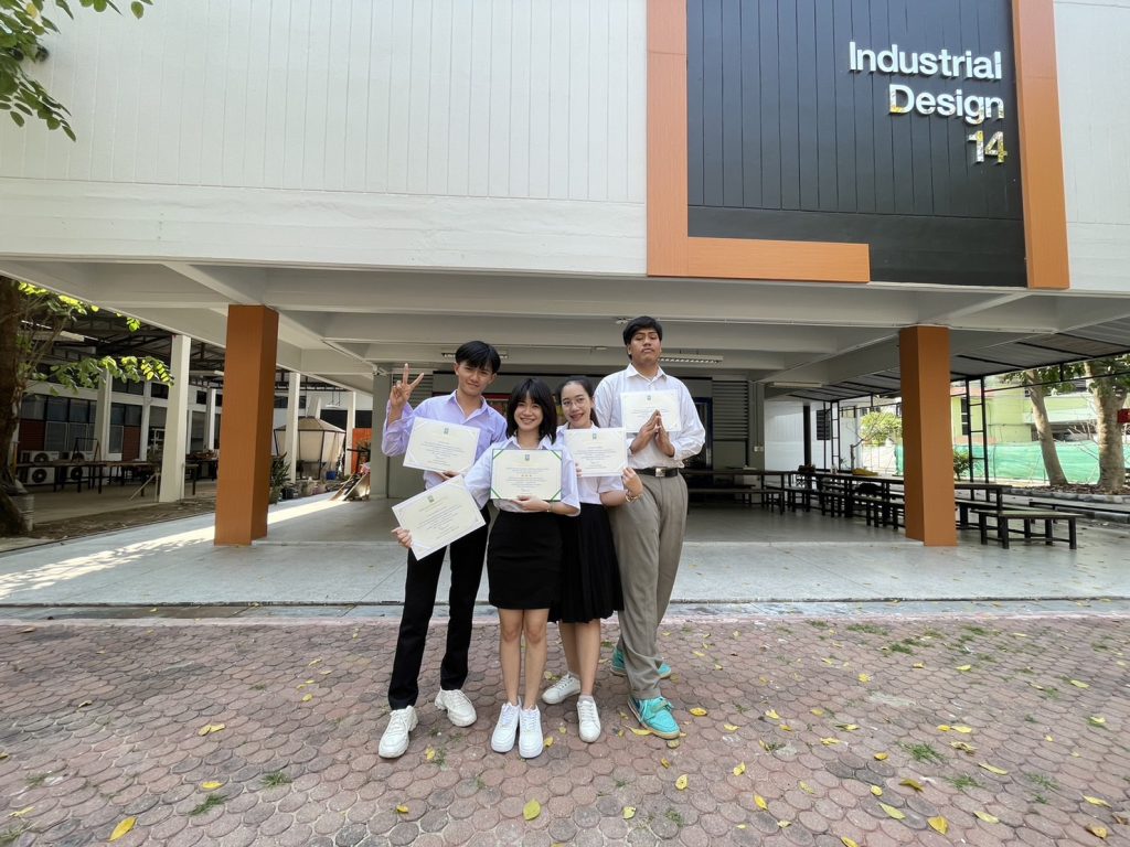 วันที่ 6 ก.พ. 2566 นักศึกษาสาขาการออกแบบอุตสาหกรรม (วิชาเอกออกแบบผลิตภัณฑ์อุตสาหกรรม) คณะสถาปัตยกรรมศาสตร์และศิลปกรรมสร้างสรรค์ เข้ารับมอบรางวัลติดดาวผลงานเด่นสายอุดมศึกษา ในกิจกรรม “การเพิ่มศักยภาพและมาตรฐานบุคลากรอุดมศึกษา : บ่มเพาะและแลกเปลี่ยนเรียนรู้เพื่อพัฒนาสิ่งประดิษฐ์และนวัตกรรม” ระหว่างวันที่ 4-6 กุมภาพันธ์ 2566 ระหว่างงานวันนักประดิษฐ์ ประจำปี 2566จัดโดย สำนักงานการวิจัยแห่งชาติ (วช.) กระทรวงการอุดมศึกษา วิทยาศาสตร์ วิจัยและนวัตกรรม ณ ศูนย์นิทรรศการและการประชุมไบเทค บางนา กรุงเทพมหานคร โดยมี ดร.วิภารัตน์ ดีอ่อง ผู้อำนวยการสำนักงานการวิจัยแห่งชาติ เป็นประธานพร้อมมอบรางวัลฯ เพื่อส่งเสริมและสนับสนุนการพัฒนาศักยภาพของนักเรียน นักศึกษาสายอุดมศึกษาให้เกิดแรงจูงใจในการคิดค้นผลงานประดิษฐ์และนวัตกรรมเพื่อใช้ในประเทศ โดยมีนักศึกษาการออกแบบอุตสาหกรรม (วิชาเอกออกแบบผลิตภัณฑ์อุตสาหกรรม) เข้ารับรางวัลและเกียรติบัตร ดังนี้