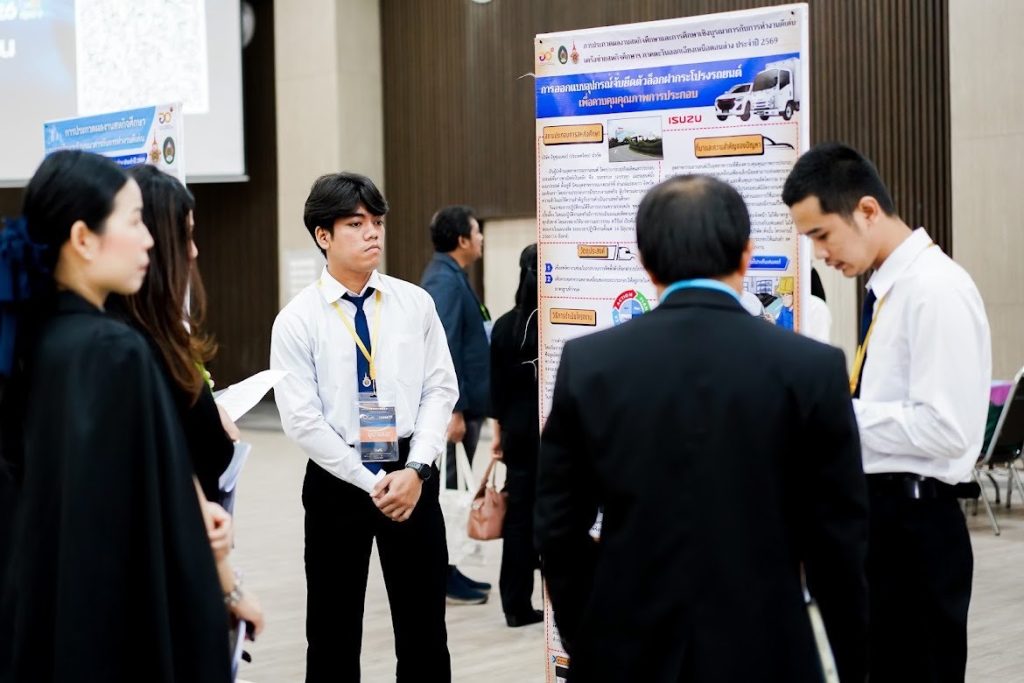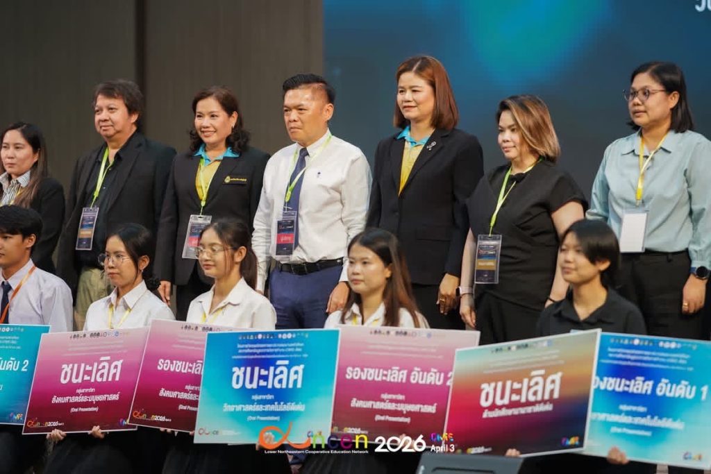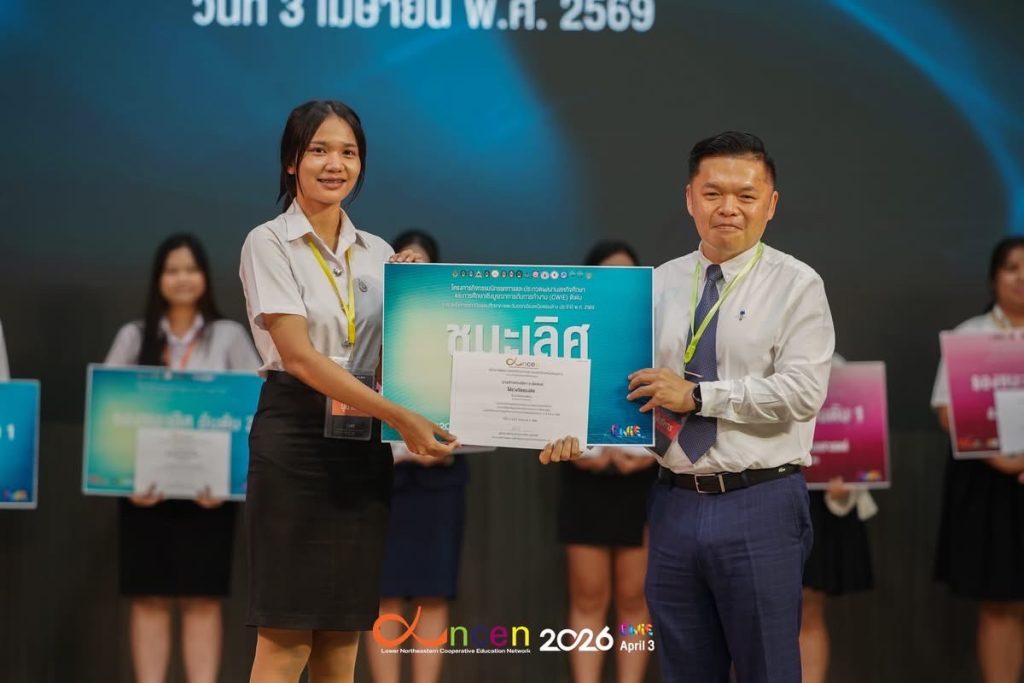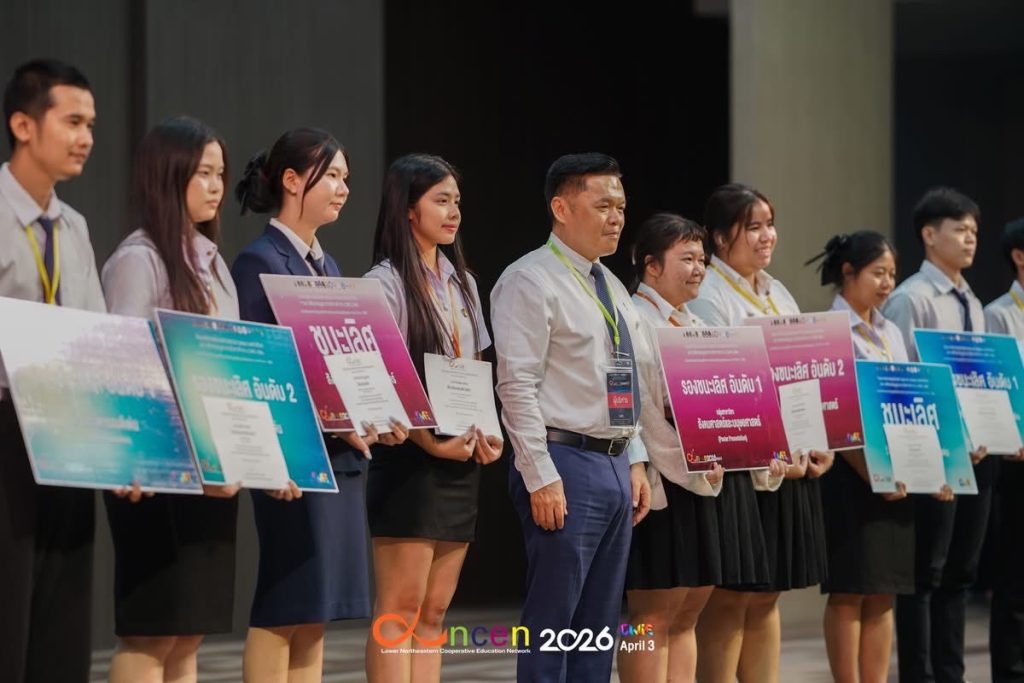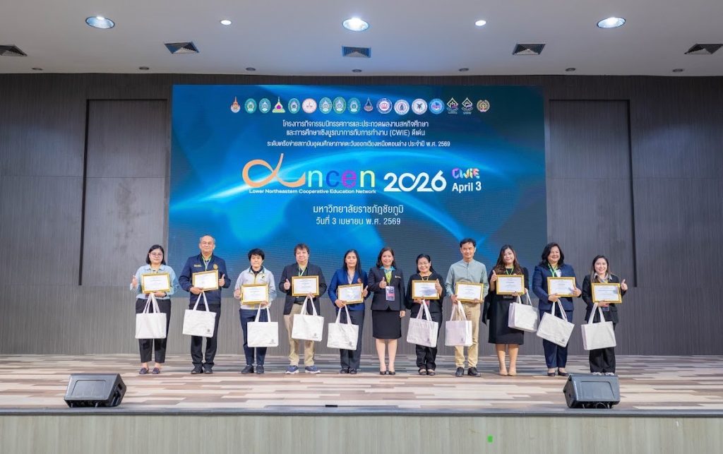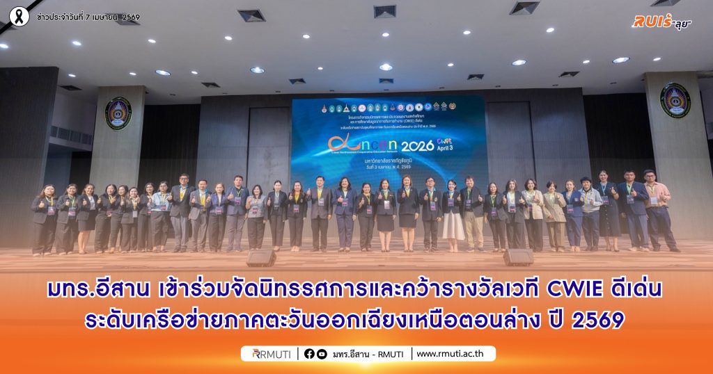 วันที่ 3 เมษายน 2569 มหาวิทยาลัยเทคโนโลยีราชมงคลอีสาน โดย รองศาสตราจารย์ ดร.โฆษิต ศรีภูธร อธิการบดี มทร.อีสาน มอบหมายให้ อาจารย์ ดร.จิณณพัต โรจนวงศ์ ผู้ช่วยผู้อำนวยการสำนักส่งเสริมวิชาการและงานทะเบียน พร้อมด้วยคณาจารย์ เจ้าหน้าที่ และนักศึกษา เข้าร่วมจัดกิจกรรมนิทรรศการและประกวดผลงาน สหกิจศึกษาและการศึกษาเชิงบูรณาการกับการทำงาน (CWIE) ดีเด่น ระดับเครือข่ายสถาบันอุดมศึกษาภาคตะวันออกเฉียงเหนือตอนล่าง ประจำปี พ.ศ. 2569 ณ หอประชุม CPRU HALL มหาวิทยาลัยราชภัฏชัยภูมิ ภายในงานประกอบด้วยกิจกรรมเสวนาในหัวข้อ “เคล็ดลับการเตรียมความพร้อมก่อนออกปฏิบัติงานสหกิจศึกษาสู่โอกาสได้งานจริงในสถานประกอบการ” เพื่อเสริมสร้างความรู้และแนวทางเตรียมความพร้อมให้แก่นักศึกษาก่อนเข้าสู่การปฏิบัติงานจริงในสถานประกอบการ ภายหลังการเสวนาเป็นกิจกรรมประกวดผลงานสหกิจศึกษาและการศึกษาเชิงบูรณาการกับการทำงาน (CWIE) ดีเด่น แบ่งออกเป็น 2 รูปแบบ ได้แก่