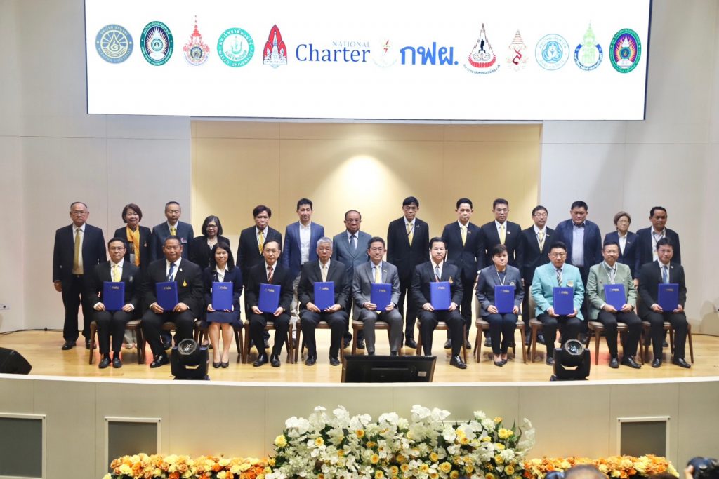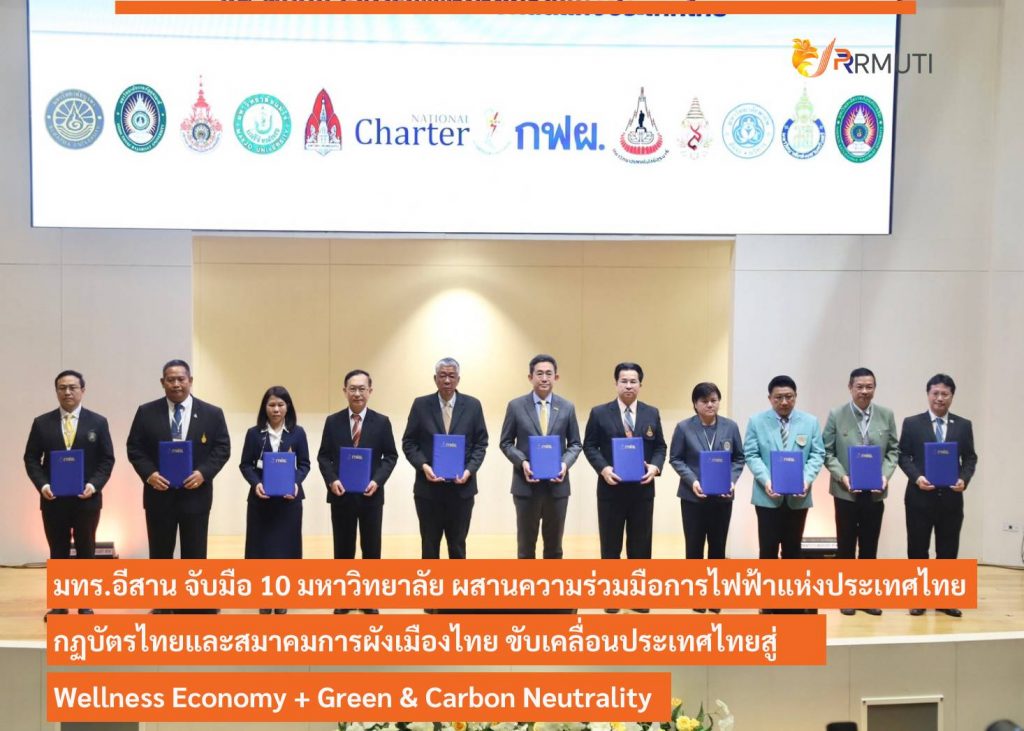 วันที่ 2 มิถุนายน 2566 มหาวิทยาลัยเทคโนโลยีราชมงคลอีสาน โดย รองศาสตราจารย์ ดร.โฆษิต ศรีภูธร อธิการบดีมหาวิทยาลัยเทคโนโลยีราชมงคลอีสาน ผู้ช่วยศาสตราจารย์ ดร.เอนก เจริญภักดี รองอธิการบดีฝ่ายยุทธศาสตร์ นโยบายและแผน พร้อมด้วย คณะผู้บริหารคณะวิศวกรรมศาสตร์และเทคโนโลยี ได้แก่ อาจารย์ ดร.พรสวรรค์ ทองใบ รองคณบดีฝ่ายแผนและประกันคุณภาพการศึกษา, ผู้ช่วยศาสตราจารย์ ดร.สุรัตน์ วรรณศรี รองคณบดีฝ่ายพัฒนานักศึกษา ผู้ช่วยศาสตราจารย์ ดร.ธัชชัย พุ่มพวง รองคณบดีฝ่ายนวัตกรรมวิชาชีพและการจัดหารายได้ ผู้ช่วยศาสตราจารย์สุภาธิณี กรสิงห์ ผู้ช่วยคณบดี ผู้ช่วยศาสตราจารย์สุรินทร์ อ่อนน้อม ผู้ช่วยคณบดี เข้าร่วม “พิธีลงนามข้อตกลงความร่วมมือการพัฒเศรษฐกิจการแพทย์ การส่งเสริมสุขภาพ พลังงานสะอาดและการส่งเสริมการลงทุนในเขตนวัตกรรมและพื้นที่เขื่อนของการไฟฟ้าฝ่ายผลิตแห่งประเทศไทย” ระหว่าง การไฟ้ฟ้าฝ่ายผลิตแห่งประเทศไทย กับ เครือข่ายมหาวิทยาลัยและกฏบัตรไทย (ม.สงขลานครินทร์, ม.วิทยาลัยบูรพา, ม.เทคโนโลยีสุรนารี, ม.เทคโนโลยีราชมงคลอีสาน, ม.ขอนแก่น, ม.ราชภัฏอุดรธานี, ม.แม่ฟ้าหลวง, ม.แม่โจ้, ม.พายัพ, ม.พะเยา) เพื่อร่วมเปลี่ยนประเทศไทยเป็นประเทศรายได้สูง ณ ห้องออดิทอเรียม อาคาร ท.103 การไฟ้ฟ้าฝ่ายผลิตแห่งประเทศไทย สำนักงานกลาง จังหวัดนนทบุรี โดยได้รับเกียรติจาก นายบุญญนิตย์ วงศ์รักมิตร ผู้ว่าการการไฟ้ฟ้าฝ่ายผลิตแห่งประเทศไทย เป็นประธานกล่าวเปิดงาน และมีนายจรัญ คำเงิน รองผู้ว่าการการไฟ้ฟ้าฝ่ายผลิตแห่งประเทศไทย กล่าวรายงานวัตถุประสงค์
