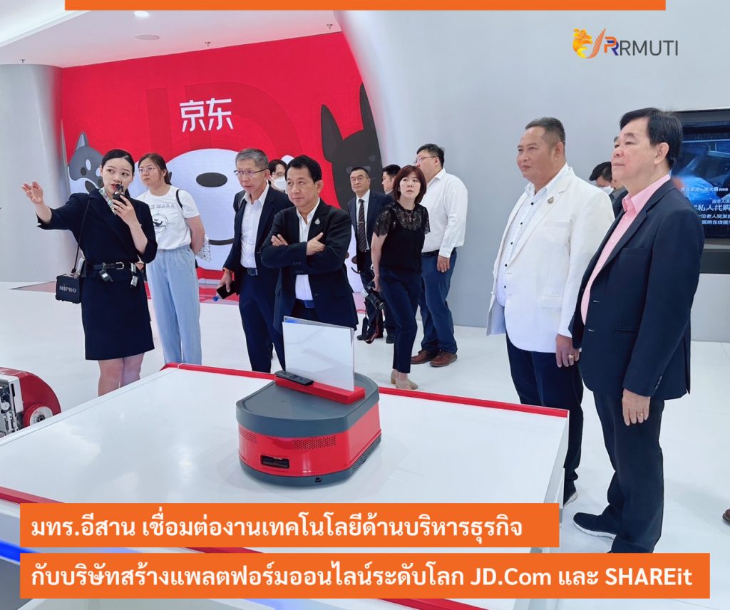 วันที่ 2 กรกฎาคม 2566 รองศาสตราจารย์ ดร.โฆษิต ศรีภูธร อธิการบดีมหาวิทยาลัยเทคโนโลยีราชมงคลอีสาน และอาจารย์ ดร.อนิรุธ พิพัฒน์ประภา คณบดีคณะบริหารธุรกิจ ร่วมศึกษางานกับสำนักงานการวิจัยแห่งชาติ ที่บริษัท SHAREit และ JD.Com สำนักงานใหญ่ประจำกรุงปักกิ่ง ประเทศจีน โดยทั้ง 2 บริษัท เป็นบริษัทที่มีความเชี่ยวชาญด้านการทำธุรกิจ ในรูปแบบของพาณิชย์อิเล็กทรอนิกส์ (E-commerce) บนแพลตฟอร์มออนไลน์ที่ยิ่งใหญ่ที่สุดของประเทศจีน รวมถึงมีเครือข่ายในหลายประเทศทั่วโลก ซึ่งรูปแบบของธุรกิจครอบคลุมตลอดทั้งห่วงโซ่อุปทานของการขายสินค้าผ่านช่องทางออนไลน์ จนกระทั่งถึงการจัดการขนส่งโลจิสติกส์ที่มีความทันสมัยและรวดเร็วมีประสิทธิภาพมาก พร้อมนี้ รองศาตราจารย์ ดร.โฆษิต ศรีภูธรอธิการบดี ได้กล่าวเพิ่มเติมว่า สำหรับการเข้าเยี่ยมชม 2 บริษัทนี้ จะได้นำมาช่วยเสริมแกร่งจุดเน้นของมหาวิทยาลัย และตอบสนองการเป็นมหาวิทยาลัยในกลุ่มที่ 2 ที่เน้นนวัตกรรมและการเป็นผู้ประกอบการ ซึ่งทางมหาวิทยาลัยได้มีการเตรียมโครงการสำหรับการสร้างแพลตฟอร์มการขายของออนไลน์ การสร้างทักษะที่จำเป็นสำหรับผู้ประกอบการธุรกิจออนไลน์ โดยมีการบูรณาการร่วมกันระหว่าง 3 หน่วยงานภายในเช่น สถาบันวิจัยและพัฒนา คณะบริหารธุรกิจ และสถาบันบริการวิชาการแห่ง มทร.อีสาน และพร้อมที่จะเชื่อมต่อกับ 2 บริษัทของจีน ได้อย่างรวดเร็ว ครั้งนี้ได้มีการประชุมร่วมกันในการส่งนักศึกษา คณาจารย์ด้านบริหารธุรกิจ ด้านเทคโนโลยีสารสนเทศ เข้าฝึกสหกิจศึกษา Reskill และ Upskill ในอนาคตอันใกล้นี้