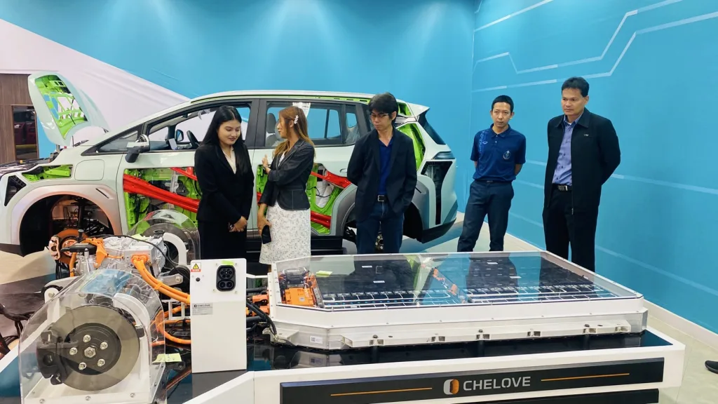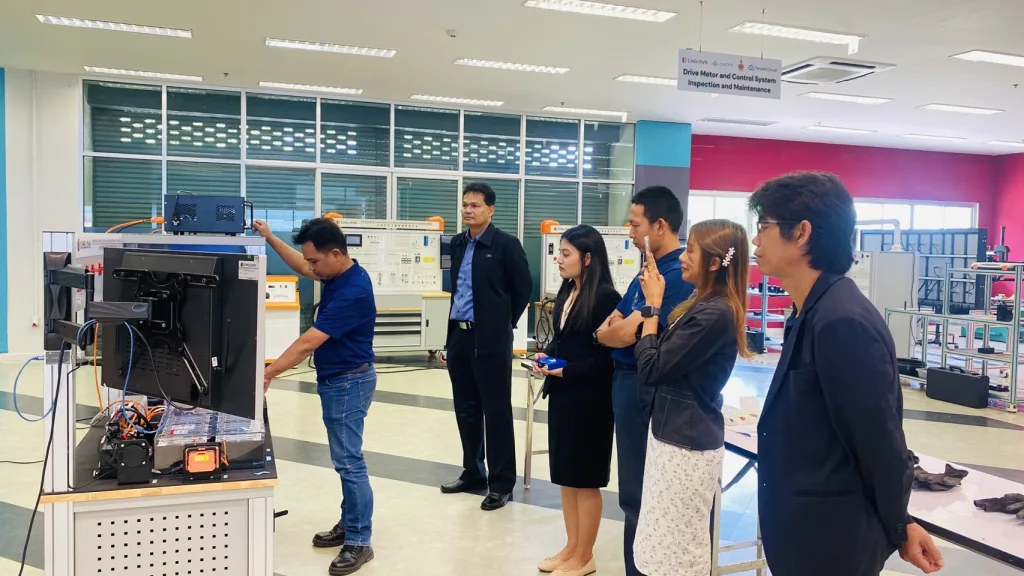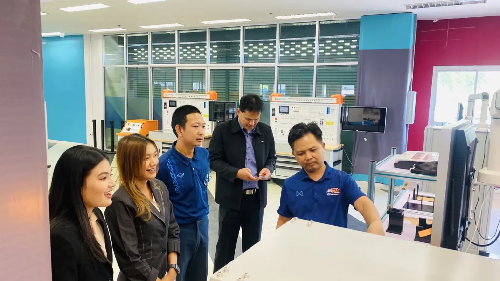 มหาวิทยาลัยเทคโนโลยีราชมงคลอีสาน โดย รองศาสตราจารย์ ดร.โฆษิต ศรีภูธร อธิการบดี มอบหมายให้ อาจารย์ ดร.ประจวบ อินระวงค์ ผู้อำนวยการสถาบันยานยนต์ไฟฟ้า มทร.อีสาน ต้อนรับ ผู้ช่วยศาสตราจารย์ ดร.วีระยุทธ สุดสมบูรณ์ ซึ่งนำคณะศึกษาดูงานจากมหาวิทยาลัยราชภัฏนครศรีธรรมราช เยี่ยมชมและหารือแนวทางบูรณาการความร่วมมือ การจัดการเรียนการสอน การวิจัย และบริการวิชาการ ด้านยานยนต์ไฟฟ้า และอุตสหกรรมแห่งอนาคต เมื่อวันที่ 5 สิงหาคม 2568 ณ RMUTI-CHELOVE EV TRAINING CENTER สถาบันยานยนต์ไฟฟ้า มหาวิทยาลัยเทคโนโลยีราชมงคลอีสาน นครราชสีมา