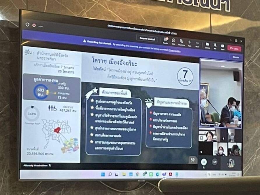 เมืองอัจฉริยะ ประกอบไปด้วยทั้งหน่วยงานภาครัฐ ภาคธุรกิจเอกชน และกลุ่มสถาบันอุดมศึกษา โดยมี นายสมเกียรติ วิริยะกุลนันท์ รองผู้ว่าราชการจังหวัดนครราชสีมา นำทีม ณ ห้องประชุม Catan อาคารเครื่องมือ 1 มหาวิทยาลัยเทคโนโลยีสุรนารี (มทส.) ให้กับคณะอนุกรรมการขับเคลื่อนและบริหารโครงการเมือง ผ่านระบบออนไลน์ โดยมี