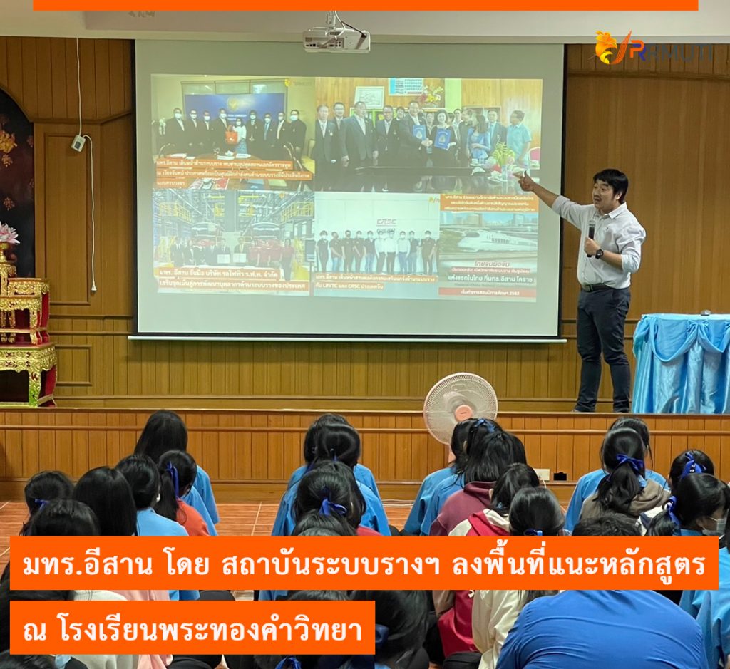 วันที่ 7 ธันวาคม 2565 มหาวิทยาลัยเทคโนโลยีราชมงคลอีสาน โดย รองศาสตราจารย์ ดร.โฆษิต ศรีภูธร อธิการบดีมหาวิทยาลัยเทคโนโลยีราชมงคลอีสาน มอบหมายให้ รองศาสตราจารย์ ดร.อภิชิต คำภาหล้า หัวหน้าสถาบันระบบรางแห่งมหาวิทยาลัยเทคโนโลยีราชมงคลอีสาน พร้อมด้วยคณาจารย์ เจ้าหน้าที่ และนักศึกษา คณะระบบรางและการขนส่ง มทร.อีสาน ออกแนะแนวการศึกษาต่อระดับปริญญาตรี ประจำปีการศึกษา 2566 ให้กับนักเรียนชั้นมัธยมศึกษาปีที่ 6 ณ โรงเรียนพระทองคำวิทยา อำเภอพระทองคำ จังหวัดนครราชสีมา
