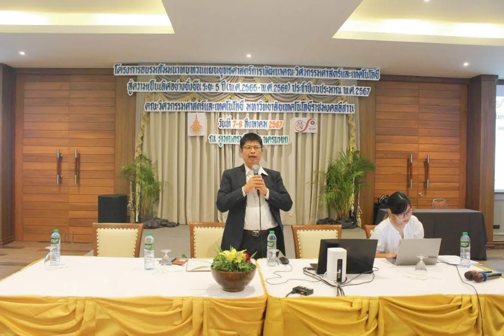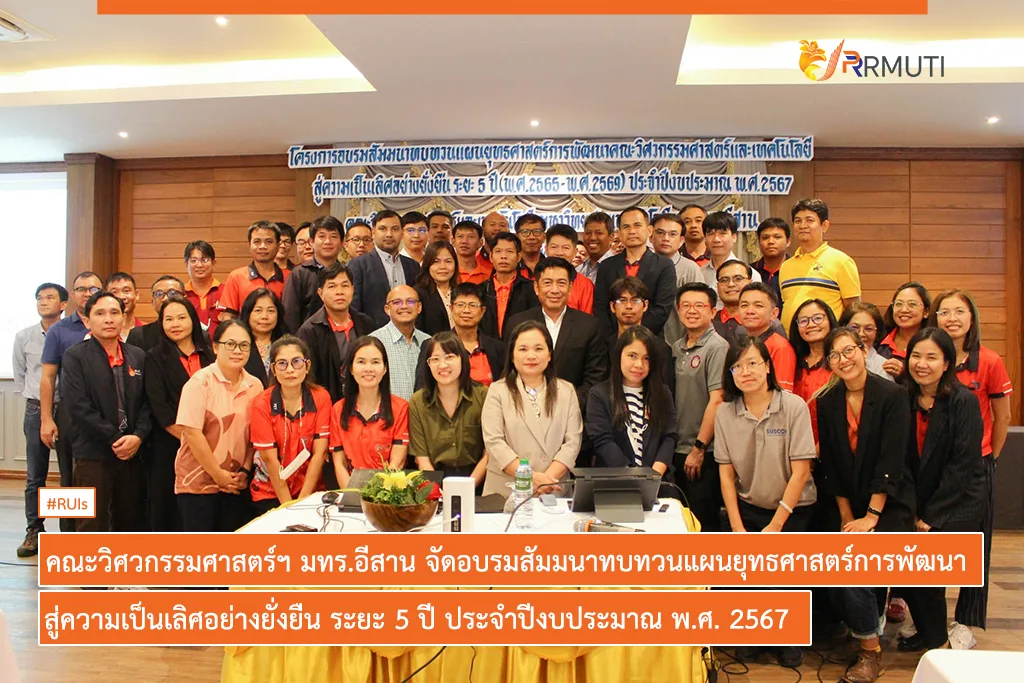 วันที่ 9 สิงหาคม 2567 มหาวิทยาลัยเทคโนโลยีราชมงคลอีสาน โดย คณะวิศวกรรมศาสตร์และเทคโนโลยี จัดโครงการอบรมสัมมนาทบทวนแผนยุทธศาสตร์การพัฒนา คณะวิศวกรรมศาสตร์และเทคโนโลยี สู่ความเป็นเลิศอย่างยั่งยืน ระยะ 5 ปี (พ.ศ. 2565 – พ.ศ. 2569) ประจำปีงบประมาณ พ.ศ. 2567 ในระหว่างวันที่ 7 – 9 สิงหาคม 2567 ณ ภูมนตรา รีสอร์ท ตำบลหินตั้ง อำเภอเมืองนครนายก จังหวัดนครนายก โดยมี ผู้ช่วยศาสตราจารย์ ดร.ศตคุณ เดชพันธ์ คณบดีคณะวิศวกรรมศาสตร์และเทคโนโลยี พร้อมด้วยคณะผู้บริหาร และบุคลากรภายในคณะ เข้าร่วมโครงการอบรม ฯ อย่างพร้อมเพรียง