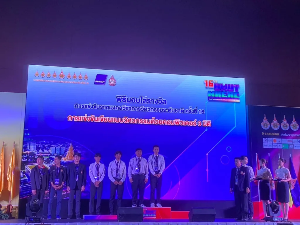 นักศึกษาที่ได้รับรางวัล: นายชลธี กลอนจะโป๊ะ, นายภานุเดช เงินขาว และ นายเนตฐิติภูมิ พงษ์สุวรรณ์