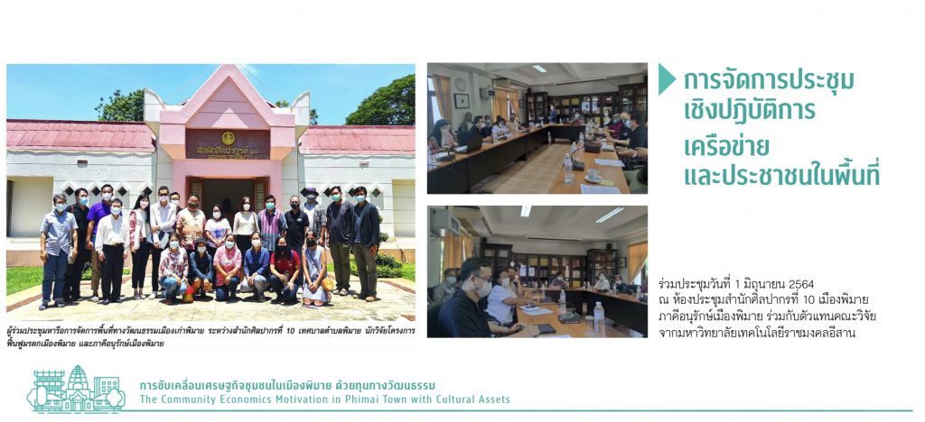ทั้งนี้ มหาวิทยาลัยเทคโนโลยีราชมงคลอีสาน ได้มุ่งเน้นให้เกิดการพัฒนากลไกความร่วมมือ และแผนความร่วมมือกับภาคีหลัก ในการจัดการทุนวัฒนธรรมเพื่อยกระดับเศรษฐกิจชุมชนและสำนึกท้องถิ่น เพื่อนำมาสู่การพัฒนาเชิงพื้นที่ร่วมกัน ขับเคลื่อนเศรษฐกิจชุมชน การสร้างแรงบันดาลใจให้แก่คนรุ่นใหม่ในพื้นที่ ซึ่งเป็นทั้งผู้ประกอบการทางธุรกิจและข้าราชการ เข้าร่วมกลุ่มทางโครงการฯ และภาคีอนุรักษ์เมืองพิมาย โดยการบูรณาการนักวิจัยในหลายศาสตร์และหลายสถาบันเพื่อเข้าร่วมในการพัฒนาพื้นที่ให้บรรลุเป้าหมาย สร้างนวัตกรรม ถ่ายทอดองค์ความรู้ ถ่ายทอดเทคโนโลยีบริการวิชาการ เพื่อก่อให้เกิดรายได้ ซึ่งสอดคล้องกับขับเคลื่อนงานด้านศิลปะและวัฒนธรรมเพื่อการพัฒนาเชิงพื้นที่ ในโครงการ วิจัยการขับเคลื่อนเศรษฐกิจชุมชนในเมืองพิมายด้วยทุนทางวัฒนธรรมนี้