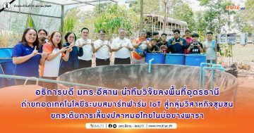 อธิการบดี มทร.อีสาน นำทีมวิจัยลงพื้นที่อุดรธานี ถ่ายทอดเทคโนโลยีระบบสมาร์ทฟาร์ม IoT สู่กลุ่มวิสาหกิจชุมชน ยกระดับการเลี้ยงปลาหมอไทยในบ่อยางพารา 29 เมษายน 202629 เมษายน 2026 ข่าวประชาสัมพันธ์ วันที่ 29 เมษายน 2569 มหาวิทยาลัยเทคโนโลยีราชมงคลอีสาน […] ฝ่ายประชาสัมพันธ์29 เมษายน 2026