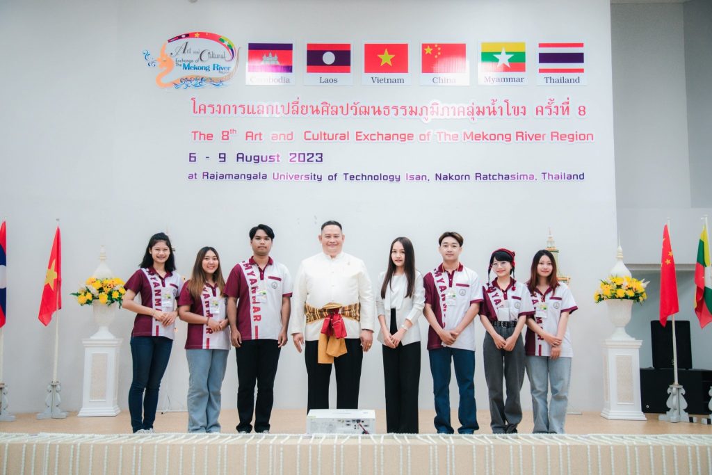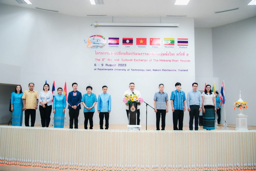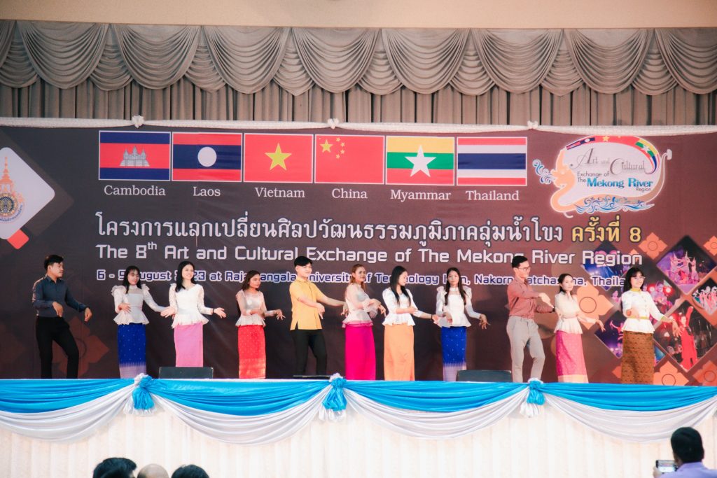 วัวันที่ 7 สิงหาคม 2566 พิธีเปิดโครงการพิธีเปิดโครงการแลกเปลี่ยนศิลปวัฒนธรรมภูมิภาคลุ่มน้ำโขง ครั้งที่ 8 ณ บริเวณลานอนุสาวรีย์ท้าวสุรนารี ซึ่งได้รับเกียรติจาก นายภูมิสิทธิ์ วังคีรี รองผู้ว่าราชการจังหวัดนครราชสีมาได้กล่าวต้อนรับผู้เข้าร่วมจากประเทศภูมิภาคลุ่มน้ำโขง และกล่าวเปิดโครงการฯ โดยมี รองศาสตราจารย์ ดร.โฆษิต ศรีภูธร อธิการบดีมทร.อีสาน กล่าวรายงานวัตถุประสงค์การจัดโครงการ หลังจากนั้นได้มีกิจกรรมและการแสดง จาก มทร.อีสาน เจ้าภาพโครงการ และประเทศลุ่มน้ำโขงที่เข้าร่วมโครงการ เช่น การแสดงพิธีเปิด ชุด เรืองรอง วัฒนธรรมทอง สยามไทย โดย นักศึกษา มทร.อีสาน การแสดงจากประเทศกัมพูชา รอร์แบม นีย์ กัมพูเชยา, การแสดงจากประเทศเวียดนาม Come to the people of Vietnam, การแสดงจากประเทศลาว ฟ้อนสาวลาวล้านช้าง, การแสดงจากประเทศเมียนมาร์ การแสดงรำ “สวัสดีเมียนมา (Mingalar Par)”, การแสดงจากประเทศจีน การขับร้องเพลง 烟雨行舟 yān yǔ xíng zhō , การแสดงวงโปงลาง เปิดวง และฟ้อนบายศรีหลวง การแสดงจากประเทศกัมพูชา Rorbam Kuos Tr Louck (ระบำเคาะกะลา), การแสดงจากประเทศเวียดนาม การเต้นรำ: ร่มปีกจากภูเขา, การแสดงจากประเทศลาว แฟชั่นโชว์วัฒนธรรมการแต่งกายแบบชาวลาว, การแสดงจากประเทศเมียนมาร์ ชเหว่ มาน ต่อง เย่ะโข่ (ရွှေမန်းတောင်ရိပ်ခို) ร่มเงาของภูเขาแห่งมัณฑะเล, การแสดงจากประเทศจีน การแสดงจินตลีลาประกอบเพลง小城明月 xiǎo chéng míng yuè และปิดท้ายด้วยการแสดงจากประเทศไทย การแสดงวงโปงลาง ชุดเต้ยลา โดยมีประชาชนชาวจังหวัดนครราชสีมา ให้ความสนใจเข้าร่วมชมการแสดงชุดต่าง ๆ จำนวนมาก สร้างความตื่นตา ตื่นใจแก่ผู้เข้าร่วมชมงานเป็นอย่างยิ่ง
