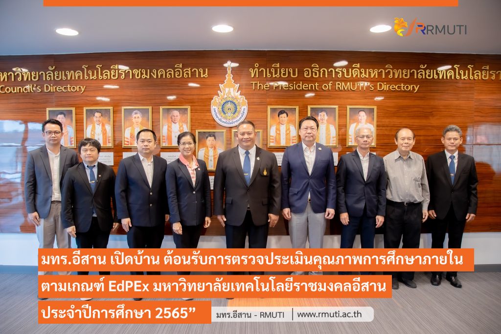 วันที่ 9 – 10 สิงหาคม 2566 มหาวิทยาลัยเทคโนโลยีราชมงคลอีสาน โดย รองศาสตราจารย์ ดร.โฆษิต ศรีภูธร อธิการบดี มทร.อีสาน คณะผู้บริหารและบุคลากร สำนักส่งเสริมวิชาการและงานทะเบียน ให้การต้อนรับ คณะกรรมการผู้ตรวจประเมินคุณภาพการศึกษาภายในตามเกณฑ์ EdPEx มหาวิทยาลัยเทคโนโลยีราชมงคลอีสาน ประจำปีการศึกษา 2565” นำโดย ผศ.ดร.พนาสัณฑ์ เกาะสุวรรณ์ อนุกรรมการด้านเทคนิครางวัลคุณภาพแห่งชาติ บริษัท จีไอ โฮลดิ้ง จำกัด ประธานกรรมการ, นายวรวุฒิ แจ้งศุภนิมิต อนุกรรมการด้านเทคนิครางวัลคุณภาพแห่งชาติ บริษัท แอ๊ตต้าอุตสาหกรรม จำกัด BSc. Electrical Engineering IIT, นายกิตติพงศ์ เตมียะประดิษฐ์ อดีตรักษาการกรรมการผู้จัดการ บริษัท โทรคมนาคมแห่งชาติ จำกัด (มหาชน), รศ.พญ.สุพินตา คูณมี อาจารย์ภาควิชาพยาธิวิทยา คณะแพทยศาสตร์ มหาวิทยาลัยขอนแก่น, ผศ.ดร.ณัฐพงษ์ คงประเสริฐ ผู้ช่วยอธิการบดีฝ่ายวิชาการ มหาวิทยาลัยศรีนครินทรวิโรฒ โดยมี อาจารย์ ดร.จิณณพัต โรจนวงศ์ ผู้อำนวยการสำนักส่งเสริมวิชาการและงานทะเบียน มทร.อีสาน และผศ.ดร.ณัฏธ์คณิน ศุภเมธานนท์ รองผู้อำนวยการฝ่ายวิชาการ