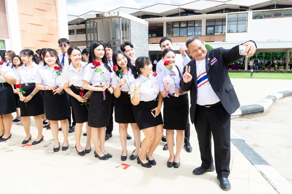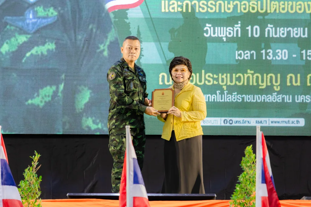 วันที่ 10 กันยายน 2568 มหาวิทยาลัยเทคโนโลยีราชมงคลอีสาน นำโดย นางสุวรรณี คำมั่น อุปนายกสภามหาวิทยาลัยฯ และ รองศาสตราจารย์ ดร.โฆษิต ศรีภูธร อธิการบดี มทร.อีสาน พร้อมด้วยคณะผู้บริหาร บุคลากรและนักศึกษา มทร.อีสาน ให้การต้อนรับ พลโท บุญสิน พาดกลาง แม่ทัพภาคที่ 2 ในโอกาสบรรยายพิเศษ “เรื่องเล่าจากแนวหน้า และการรักษาอธิปไตยของชาติ”ณ หอประชุมวทัญญู ณ ถลาง มหาวิทยาลัยเทคโนโลยีราชมงคลอีสาน นครราชสีมา โดยมีผู้บริหาร คณาจารย์ บุคลากร นักศึกษาทหาร และนักศึกษาจากทั้ง 5 วิทยาเขตของ มทร.อีสาน เข้าร่วมรับฟังภายในหอประชุมกว่า 3,000 คน และมีการถ่ายทอดบรรยากาศจากห้องประชุมไปยังวิทยาเขตเพื่อรับฟังการบรรยายพร้อมกัน โดยมีผู้เข้าร่วมรับฟังทั้งสิ้นกว่า 30,000 คน ซึ่งสะท้อนให้เห็นถึงความเป็นน้ำหนึ่งใจเดียวกันของชาวราชมงคลอีสาน ในการเทิดทูนสถาบันชาติ ศาสนา พระมหากษัตริย์ และการแสดงออกถึงความภาคภูมิใจในความเป็นไทย