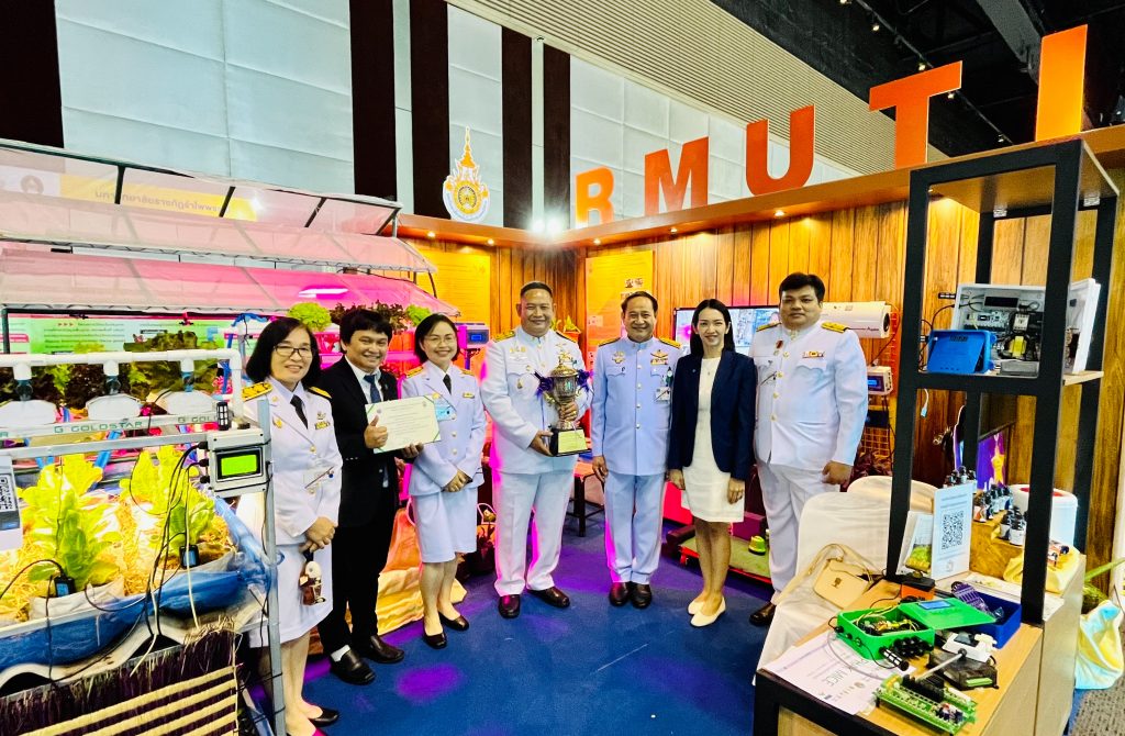 สืบเนื่องจาก สถาบันวิจัยและพัฒนา มทร.อีสาน ได้นำผลงานวิจัยเข้าร่วมจัดแสดงนิทรรศการในงานมหกรรมงานวิจัยแห่งชาติ 2566 (Thailand Research Expo 2023) ในกลุ่มเรื่อง “งานวิจัยและนวัตกรรมเพื่อยกระดับสังคมอย่างยั่งยืน” งานดังกล่าวจัดขึ้นระหว่างวันที่ 7 – 11 สิงหาคม 2566 โดยผลงานวิจัยที่เข้าร่วมจัดแสดงนิทรรศการในครั้งนี้คือผลงานวิจัยเรื่อง “ระบบสมาร์ทฟาร์มและระบบอัตโนมัติสำหรับการเพาะปลูกพืชผักปลอดสารพิษ ตำบลบัวเงิน อำเภอน้ำพอง จังหวัดขอนแก่น” โดยมี ดร.วิทยา ชำนาญไพร คณะวิศวกรรมศาสตร์ มทร.อีสาน วิทยาเขตขอนแก่น เป็นหัวหน้าโครงการวิจัย ซึ่งผลงานดังกล่าวได้รับรางวัลชนะเลิศ รางวัล “Platinum Award” จึงได้รับพระมหากรุณาธิคุณ จาก สมเด็จพระกนิษฐาธิราชเจ้า กรมสมเด็จพระเทพรัตนราชสุดาฯ สยามบรมราชกุมารี ให้ขึ้นรับถ้วยรางวัลพระราชทานพร้อมเกียรติบัตรในวันที่ 11 สิงหาคม 2566 ทั้งนี้ มทร.อีสาน รู้สึกภาคภูมิใจ และสำนึกในพระมหากรุณาธิคุณยิ่ง