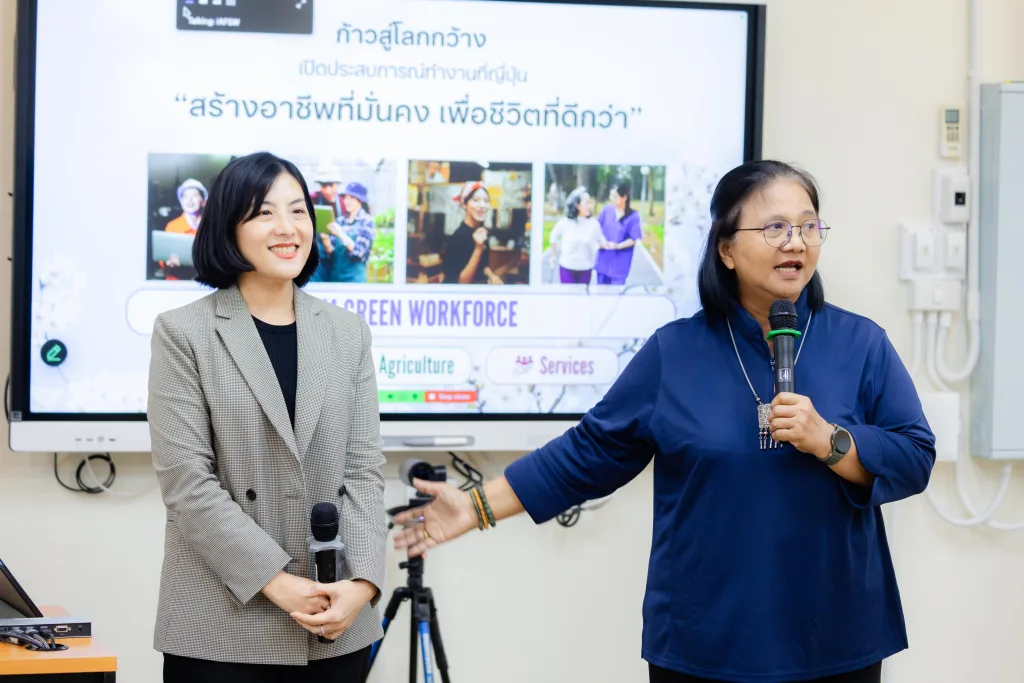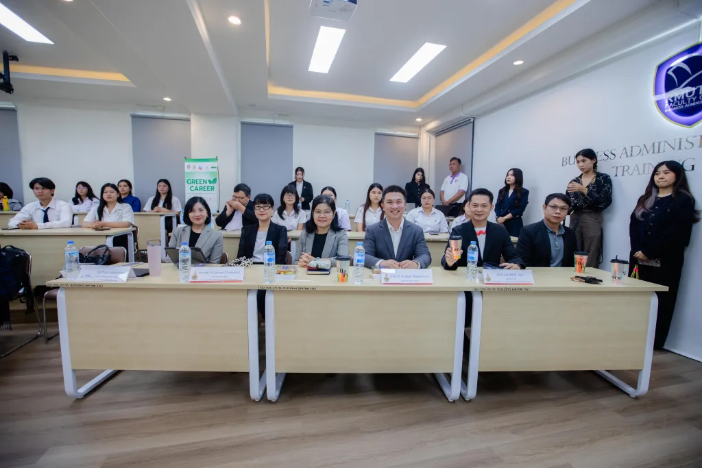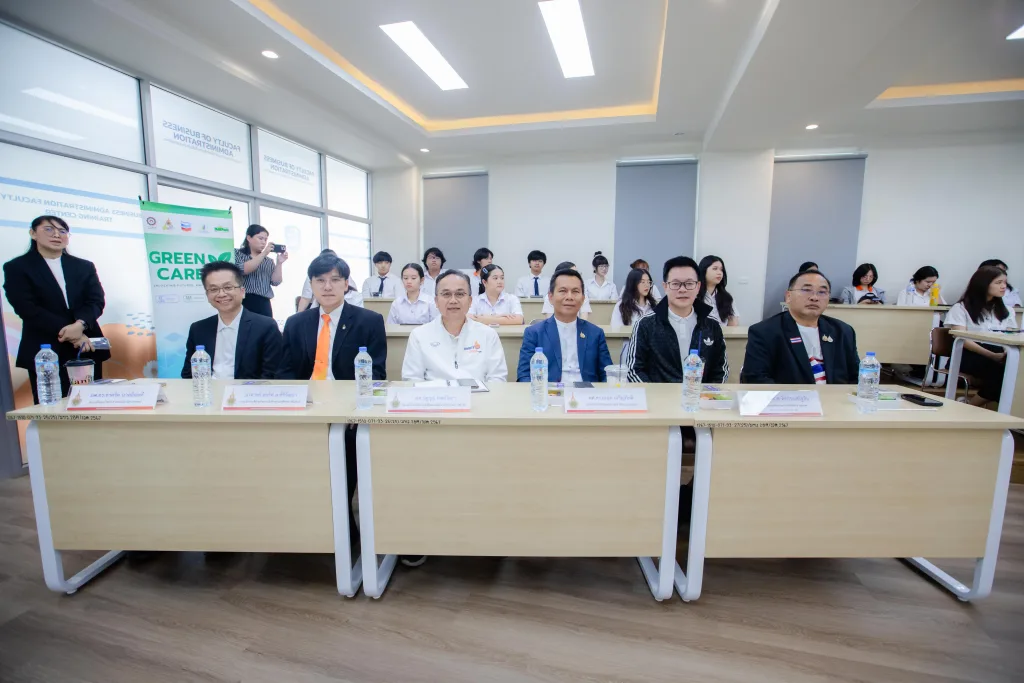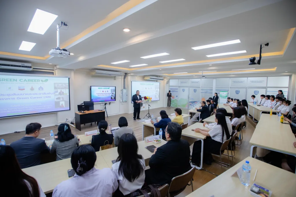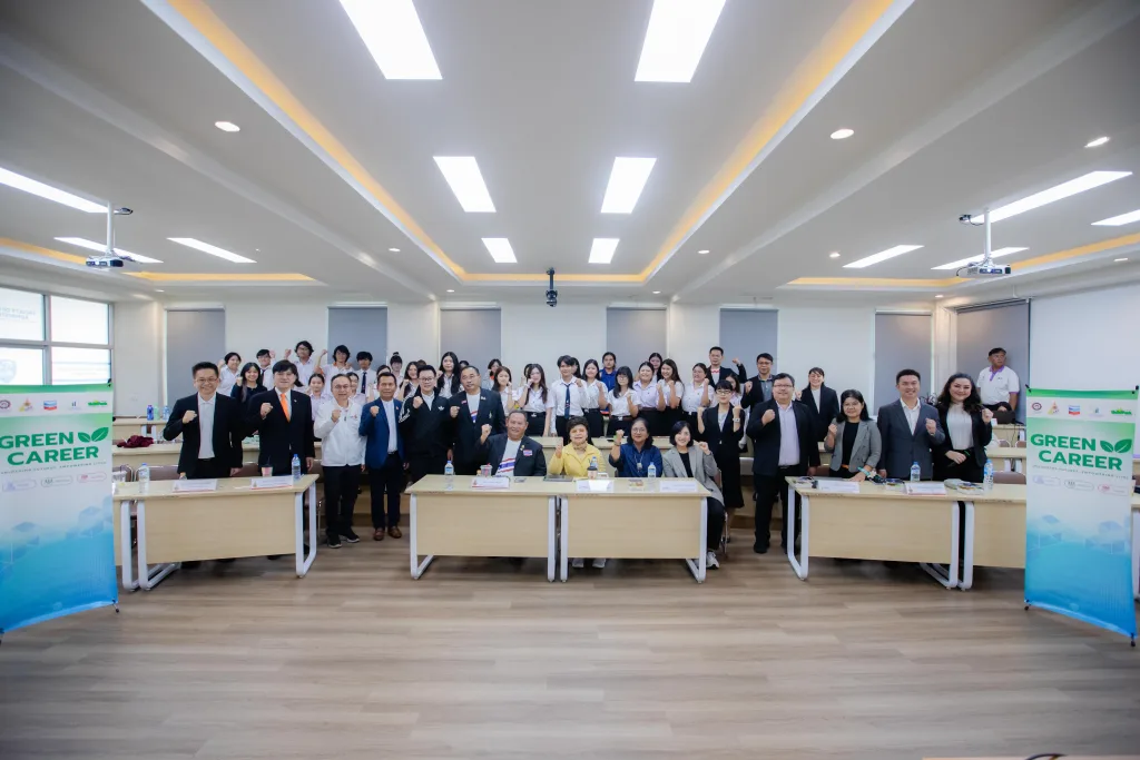 ภายในการประชุมมีการแนะนำรายละเอียดโครงการ Green Career โดยผู้แทนจากสมาคมฯ ทั้งในรูปแบบ On site และ Online รวมถึงการเปิดโอกาสให้นักศึกษาลงทะเบียนสมัครเข้าร่วมโครงการ โดยมีนักศึกษาที่ประสบความสำเร็จมาร่วมบอกเล่าประสบการณ์ตรงเพื่อสร้างแรงบันดาลใจแก่ผู้เข้าร่วมงาน ทั้งนี้ ได้รับเกียรติจาก คุณสุวรรณี คำมั่น กรรมการสภามหาวิทยาลัยผู้ทรงคุณวุฒิ และนายกสมาคมส่งเสริมและพัฒนากำลังคนสเต็มเพื่ออนาคต (IAFSW) เป็นผู้มอบทุนการศึกษา แก่ผู้เรียน Success Case โดยมี นางสาวศศินา เสียงอ่อน นักศึกษาชั้นปีที่ 4 สาขาภาษาอังกฤษเพื่อการสื่อสาร เป็นตัวแทนนักศึกษารับมอบทุนการศึกษา