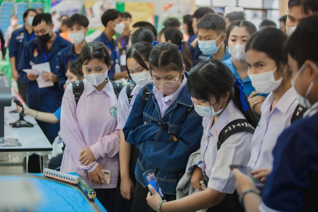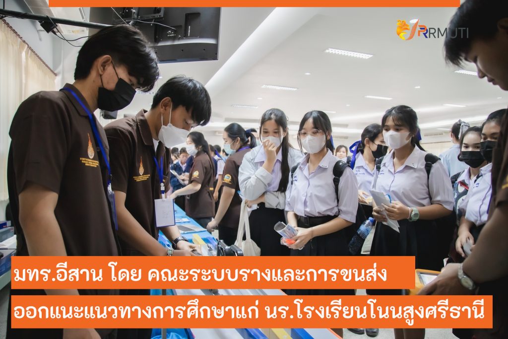 วันที่ 10 พฤศจิกายน 2565 มหาวิทยาลัยเทคโนโลยีราชมงคลอีสาน โดย รองศาสตราจารย์ ดร.โฆษิต ศรีภูธร อธิการบดี มทร.อีสาน มอบหมายให้ รองศาสตราจารย์ ดร.อภิชิต คำภาหล้า หัวหน้าสถาบันระบบรางแห่งมหาวิทยาลัยเทคโนโลยีราชมงคลอีสาน พร้อมด้วยคณาจารย์ เจ้าหน้าที่ และนักศึกษา คณะระบบรางและการขนส่ง มทร.อีสาน ออกแนะแนวการศึกษาต่อระดับปริญญาตรี ประจำปีการศึกษา 2566 ให้กับนักเรียนชั้นมัธยมศึกษาปีที่ 6 ณ โรงเรียนโนนสูงศรีธานี อำเภอโนนสูง จังหวัดนครราชสีมา เพื่อเป็นการประชาสัมพันธ์การเรียนการสอน และได้รับข้อมูลข่าวสาร อันจะช่วยส่งเสริมให้นักเรียนสามารถวางแผน เตรียมความพร้อมเป็นทางเลือกการตัดสินใจเข้าศึกษาต่อในสาขาที่ตรงกับความถนัดและความสนใจของนักเรียนได้อย่างถูกต้อง ซึ่งประกอบไปด้วยหลักสูตรวิศวกรรมระบบราง หลักสูตรวิศวกรรมซ่อมบำรุงอากาศยาน หลักสูตรนวัตกรรมการพัฒนาเมืองและพื้นที่รอบสถานีขนส่งมวลชน และหลักสูตรการจัดการการปฏิบัติการรถไฟ บรรยากาศเป็นไปด้วยความอบอุ่น สนุกสนาน ครูและนักเรียนให้การต้อนรับเป็นอย่างดี