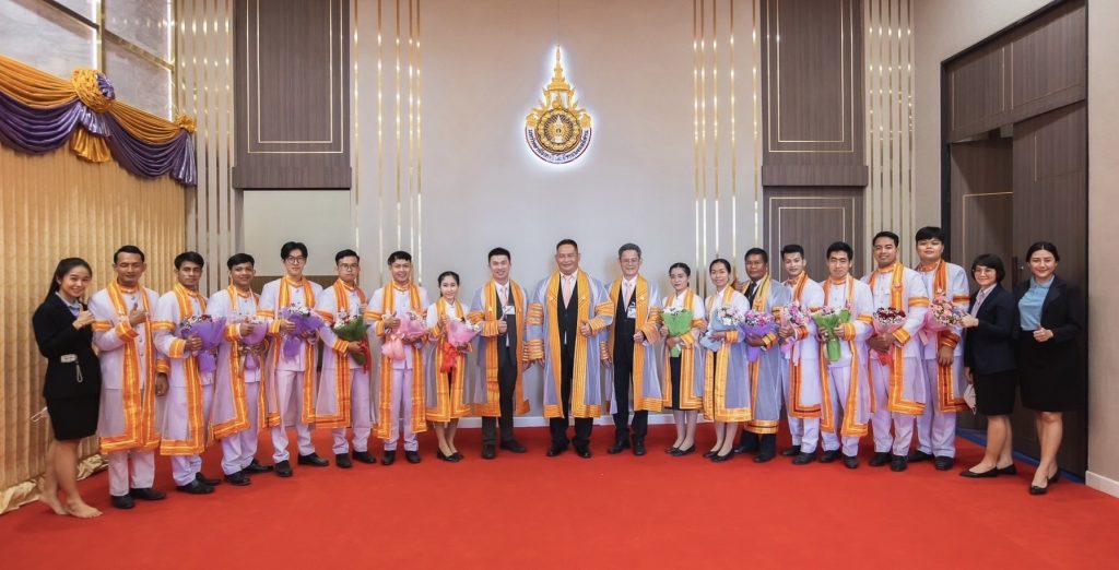 วันที่ 8 พฤศจิกายน 2565 มหาวิทยาลัยเทคโนโลยีราชมงคลอีสาน โดย รองศาสตราจารย์ ดร.โฆษิต ศรีภูธร อธิการบดี มทร.อีสาน รองศาสตราจารย์ ดร.ณรงค์ศักดิ์ ธรรมโชติ รองอธิการบดีฝ่ายวิชาการและวิเทศสัมพันธ์ อาจารย์ ดร.อนิรุธ พิพัฒน์ประภา ผู้ช่วยอธิการบดี พร้อมด้วย เจ้าหน้าที่ศูนย์ศึกษานานาชาติ มทร.อีสาน ร่วมแสดงความยินดีกับนักศึกษาทุนพระราชทานในสมเด็จพระกนิษฐาธิราชเจ้า กรมสมเด็จพระเทพรัตนราชสุดาฯ สยามบรมราชกุมารี มหาวิทยาลัยเทคโนโลยีราชมงคลอีสาน ซึ่งสำเร็จการศึกษาประจำปีการศึกษา 2563 จำนวน 18 ราย โดยมีนักศึกษาทุนได้รับเกียตินิยมอันดับ 1 จำนวน 6 ราย อันดับ 2 จำนวน 1 ราย