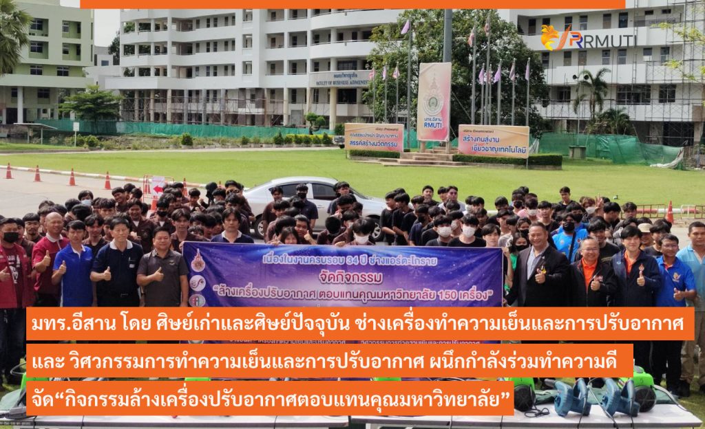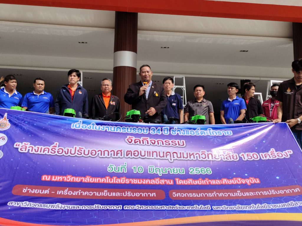 วันที่ 10 มิถุนายน 2566 มหาวิทยาลัยเทคโนโลยีราชมงคลอีสาน โดย รองศาสตราจารย์ ดร.โฆษิต ศรีภูธร อธิการบดี มทร.อีสาน เป็นประธานกล่าวเปิด กิจกรรมล้างเครื่องปรับอากาศตอบแทนคุณมหาวิทยาลัย ซึ่งจัดโดย ศิษย์เก่าและศิษย์ปัจจุบัน สาขาวิศวกรรมพลังงานและการปรับอากาศ คณะวิศวกรรมศาสตร์และเทคโนโลยี ณ มหาวิทยาลัยเทคโนโลยีราชมงคลอีสาน นครราชสีมา พร้อมลงพื้นที่ให้กำลังใจแก่นักศึกษาที่ปฏิบัติงาน และพบปะพูดคุยกับศิษย์เก่า เพื่อสร้างความสัมพันธ์อันดีร่วมกัน