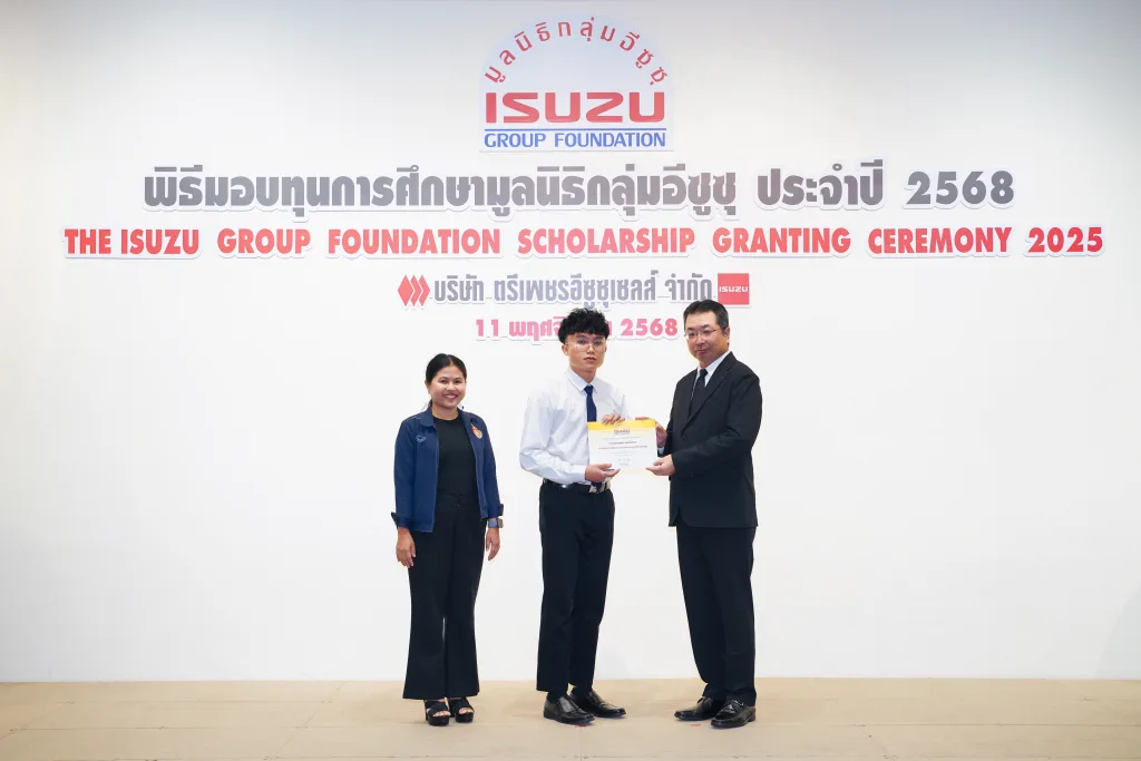 ทั้งนี้ มร. ทาคาชิ ฮาตะ กรรมการผู้จัดการบริษัท ตรีเพชรอีซูซุเซลส์ จำกัด กล่าวว่า มูลนิธิกลุ่มอีซูซุจัดพิธีมอบทุนการศึกษาเพื่อพัฒนาเยาวชนที่มีผลการเรียนดี แต่ขาดแคลนทุนทรัพย์ โดยมีวัตถุประสงค์หลักเพื่อเปิดโอกาสให้เยาวชนที่มีความมุ่งมั่น ตั้งใจ และมีศักยภาพทางการศึกษา พร้อมเติมเต็มความฝันและพัฒนาคุณภาพชีวิตให้ก้าวหน้า โดยให้การสนับสนุนทางการเงินเป็นทุนการศึกษาตั้งแต่ระดับชั้นมัธยมศึกษา อาชีวศึกษา จนถึงอุดมศึกษา จากสถาบันการศึกษาทั่วประเทศ หวังเป็นอย่างยิ่งว่านักเรียน นิสิต นักศึกษาทุกคนที่ได้รับทุนการศึกษาในวันนี้จะบรรลุเป้าหมายทางการศึกษาได้สำเร็จสมความมุ่งหมายเพื่อที่จะได้เป็นพลังขับเคลื่อนที่สำคัญสู่อนาคตที่สดใสของประเทศไทยต่อไป”